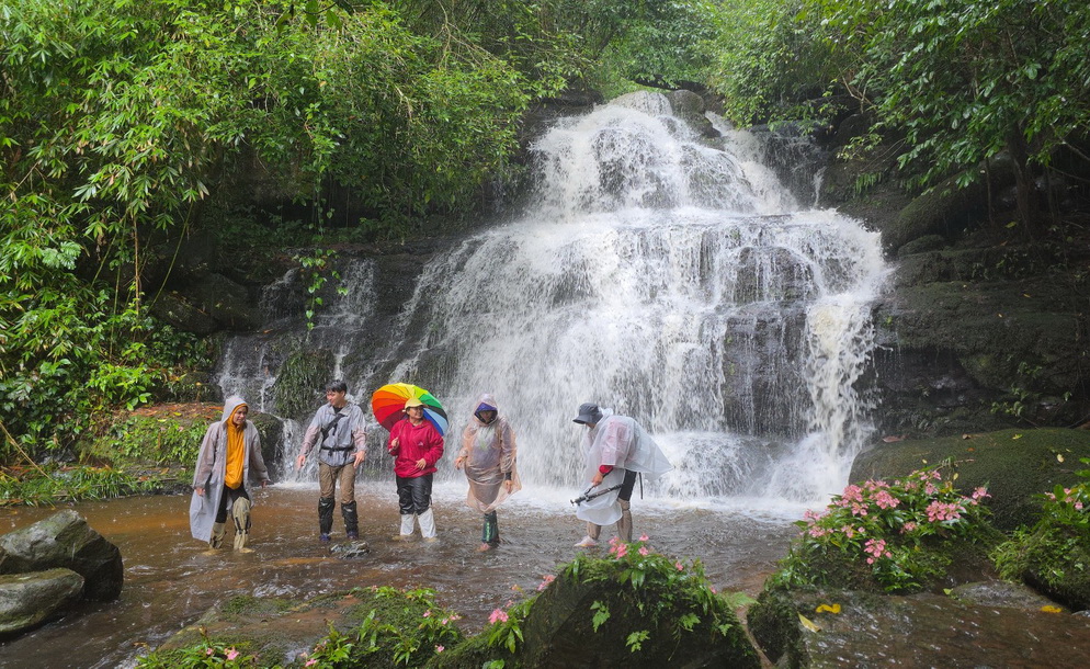 นักท่องเที่ยวเดินป่าชมน้ำตกหมันแดง ใจกลางอุทยานแห่งชาติภูหินร่องกล้า ที่กำลังสวยงาม ทั้ง 9 ชั้น โดยเฉพาะชั้นที่ 5 ที่มีดอกลิ้นมังกร ที่ชมพู เพชรเม็ดงาม ที่ออกปีที่ละ 1 ครั้ง และคาดว่าจะได้ชมถึงสิ้นเดือนสิงหาคมนี้เท่านั้น