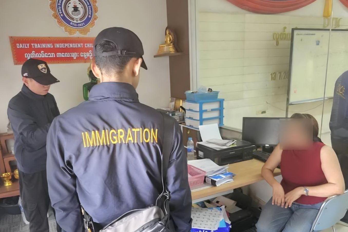 ทั้งนี้ เจ้าหน้าที่ตรวจคนเข้าเมืองจังหวัดสมุทรสาคร ร่วมบูรณาการกำลังพร้อมหน่วยงานความมั่นคง เข้าตรวจสอบอาคารพาณิชย์ เลขที่ 59/13 ม.2 ต.คอกกระบือ อ.เมือง จ.สมุทรสาคร พบ MISS MAR LAR AUNG อายุ 48 ปี สัญชาติเมียนมาเป็นครู กำลังสอนภาษา และมีเด็กเล็กที่เป็นลูกหลานแรงงานจำนวนมากกว่า 100 คน พบว่าได้มีการเชิญชวนให้มีการสมัครเรียนผ่านช่องทางออนไลน์ Facebook โดยจัดการเรียน สำหรับเด็ก Grade 1-i โดยเก็บค่าเล่าเรียนคนละ 1,500 – 2,000 บาท และใช้บัญชีทางมูลนิธิ DTIC เป็นการรับเงิน ซึ่งโฆษณาว่าเป็น การบริจาคเพื่อมาเป็นทุนให้เด็กเล่าเรียน และเพื่อกิจการทางศาสนา