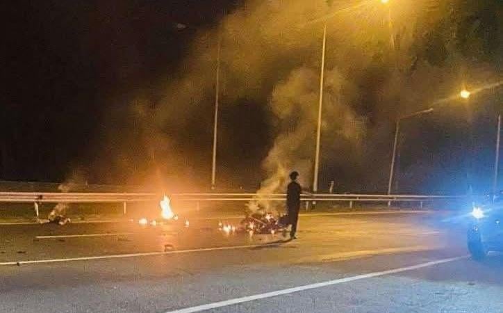 ที่เกิดเหตุพบรถจักรยานยนต์บิ๊กไบค์ ทะเบียน ภูเก็ต ชนท้ายรถบรรทุกปูนซิเมนต์ 18 ล้อ จนเกิดไฟลุกท่วม ซากรถล้มอยู่กลางถนน ใกล้กันพบศพชาย 1 ราย ทราบชื่อภายหลังคือนายอรรถพล อายุ 23 ปี ชาวภูเก็ต เป็นผู้ขับขี่บิ๊กไบค์