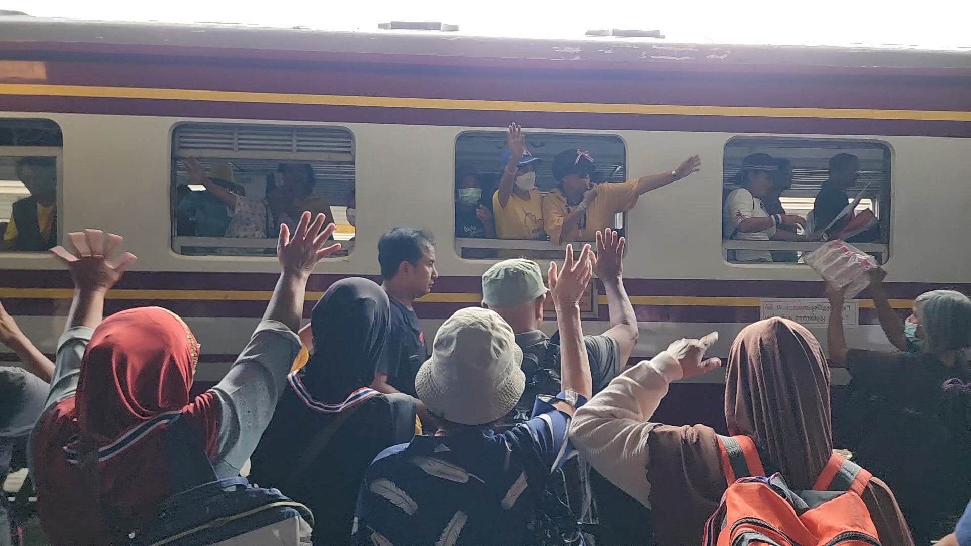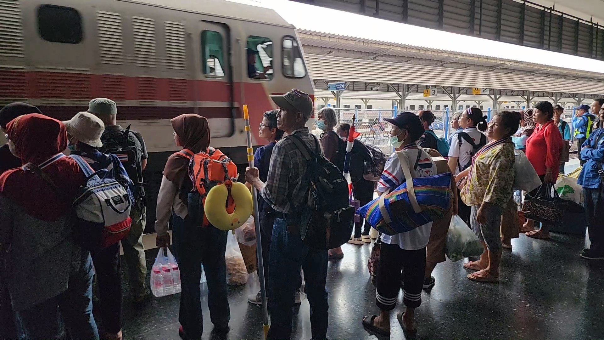 21 สิงหาคม 2568 - เมื่อเวลา 16.05 น. เย็นวานนี้ ที่สถานีรถไฟชุมทางหาดใหญ่ มีกลุ่มชาวหาดใหญ่ ประมาณ 100 คน ไปรอขึ้นรถไฟ ขบวนรถเร็ว ขบวนที่ 172 ปลายทางสถานีกรุงเทพอภิวัฒน์ เพื่อไปร่วมชุมนุม กับกลุ่มคณะรวมพลังแผ่นดิน ที่หน้ารัฐสภา 21 ส.ค.นี้ โดยกลุ่มผู้ชุมนุมได้เตรียมน้ำดื่ม อาหารแห้ง และกระเป๋าสัมภาระเสื้อผ้า ซึ่งทันทีที่รถไฟขบวนดังกล่าว เข้าเทียบชานชาลา ยะลา และปัตตานี โบกธงชาติ ร่วมต้อนรับกลุ่มผู้ชุมนุม ชาวจังหวัดสงขลา ให้ขึ้นไปบนรถไฟ ทำให้บรรยากาศเป็นไปอย่างลึกๆ และผู้ชุมนุม ก็รีบช่วยกัน ขนสิ่งของสัมภาระ ขึ้นไปบนรถไฟ