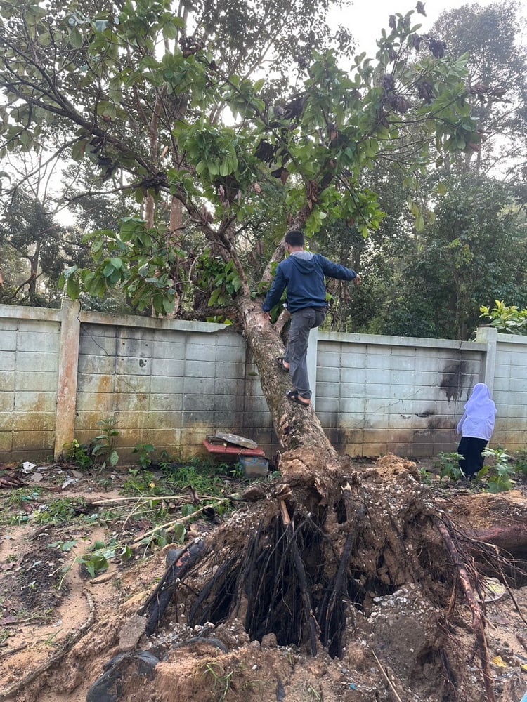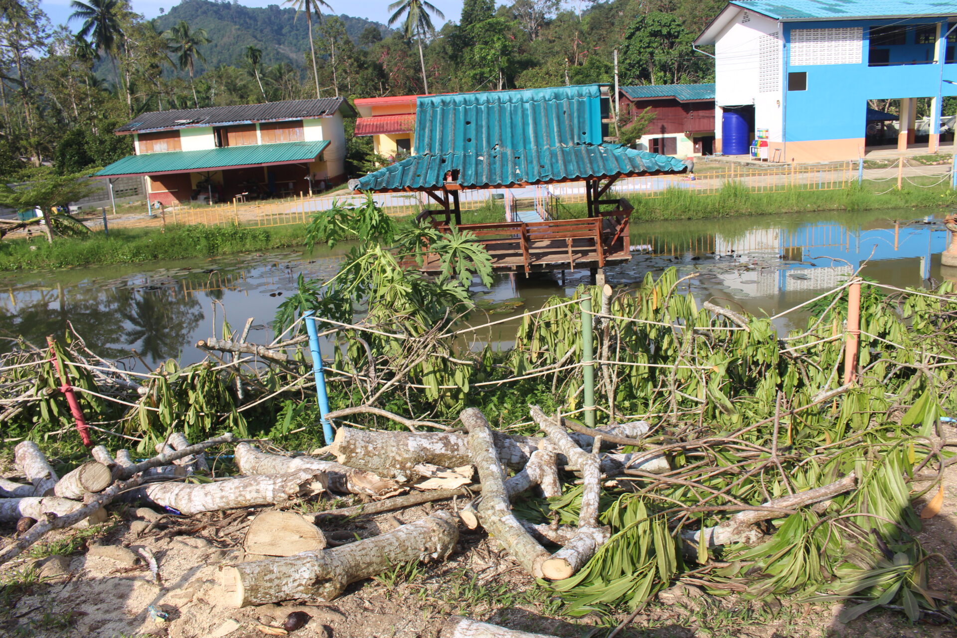 ด้าน น.ส.โสพิส หอมรส ผอ.โรงเรียน กล่าวว่า หลังจากทราบเรื่องก็ได้เข้ามาตรวจสอบและรายงานไปยัง สำนักงานเขตพื้นที่การศึกษาประถมศึกษายะล าเขต3 จากนั้นก็มีหน่วยงานต่างๆรวมถึงชาวบ้านเข้ามาตรวจสอบ ช่วยเหลือ ตัดต้นไม้ที่หักโค่นล้มทับสนามเด็กเล่น และกรีดขวางเส้นทางต่างๆ ในส่วนอื่นที่ได้รับความเสียหาย ก็จะมีอาคารอเนกประสงค์ บ้านพักครู จำนวน 3 หลัง ซึ่งตอนนี้ครุครู ทั้ง 7 คน ที่อาศัยอยู่ในบ้านพักของโรงเรียนทั้ง 3 หลัง ก็ต้องมาหลับนอนที่ห้องเรียนของนักเรียนไปก่อน เพราะต้องให้ช่างเข้ามาช่วยซ่อมแซมฝ้าเพดานและหลังคาบ้านพักให้เสร็จเรียบร้อยเสียก่อน