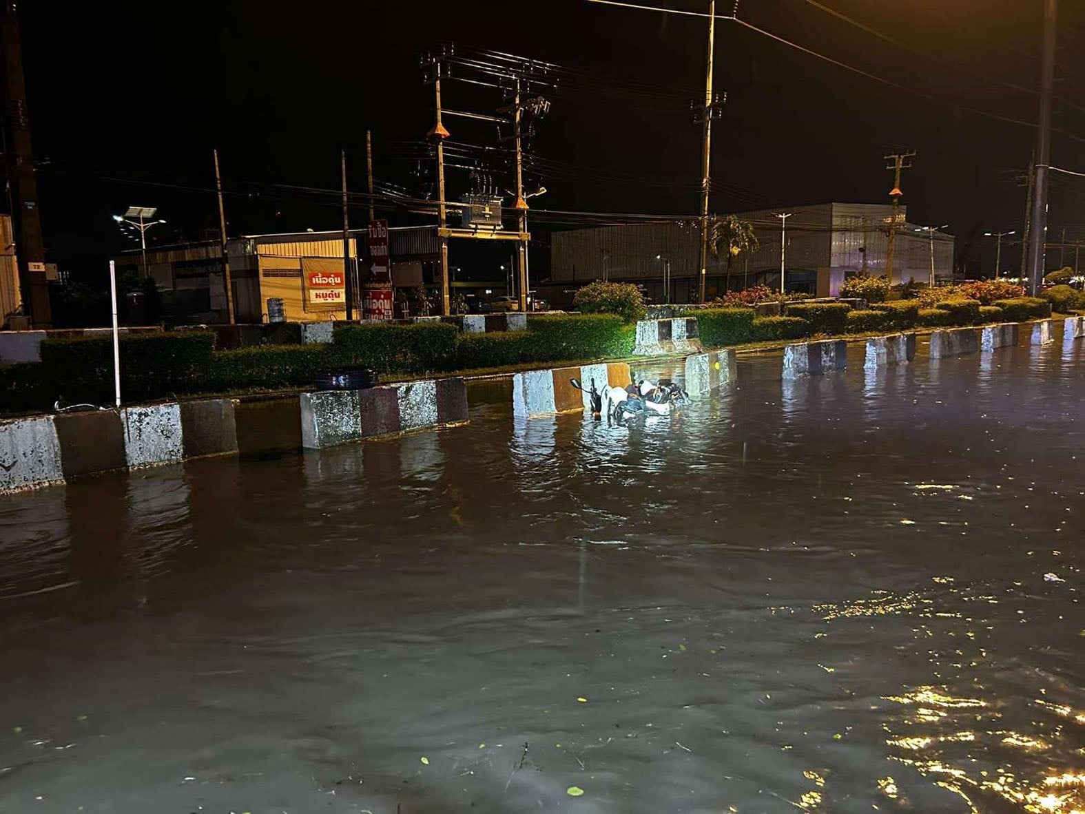 ที่เกิดเหตุมีน้ำท่วมขังบนถนน พบรถจักรยานยนต์ยี่ห้อ ฮอนด้า คลิก สีขาว ทะเบียน 5 ขฌ 3157 กรุงเทพมหานคร ซึ่งเป็นรถของผู้ตายล้มพิงอยู่กับแบริเออร์ปูน ที่วางแนวก่อสร้างไว้อยู่ โดยมีสายไฟพาดบนแบริเออร์ปูนดังกล่าว ส่วนร่างของคนขับรถจักรยานยนต์รายนี้ คือ นายธนากร นาคสุทิน อายุ 17 ปี ชาวจังหวัดลพบุรี ถูกพบเสียชีวิตอยู่บนฟุตบาทหน้าร้านก๋วยเตี๋ยว ในสภาพเนื้อตัวซีดจากการจมน้ำและถูกกระแสไฟฟ้าดูด
