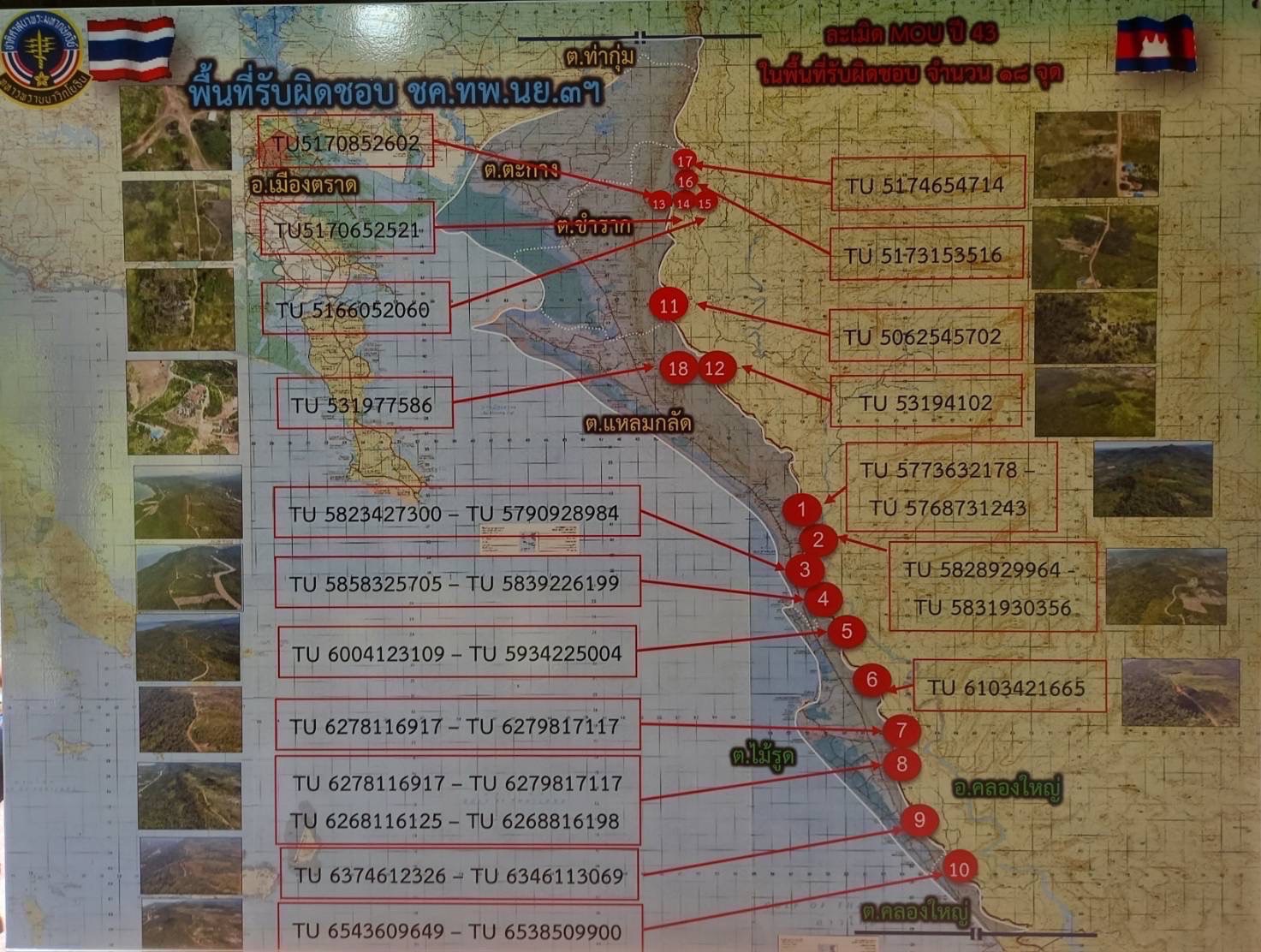 25 กันยายน 2568 - กองป้องกันชายแดนที่ 501 ภูมิภาคทหารที่ 5 ส่งหนังสือตอบกลับข้อเสนอจากหน่วยเฉพาะกิจนาวิกโยธินตราด อย่างเป็นทางการ หลังการประชุมระดับพื้นที่เมื่อวันที่ 19 กันยายนที่ผ่านมา โดยยอมรื้อถอนบ้าน 1 หลัง และแก้ไขคูสนามตามข้อเรียกร้อง แต่ปฏิเสธที่จะรื้อบ้านประชาชนอีก 2 หลัง ในสวนยางพารา