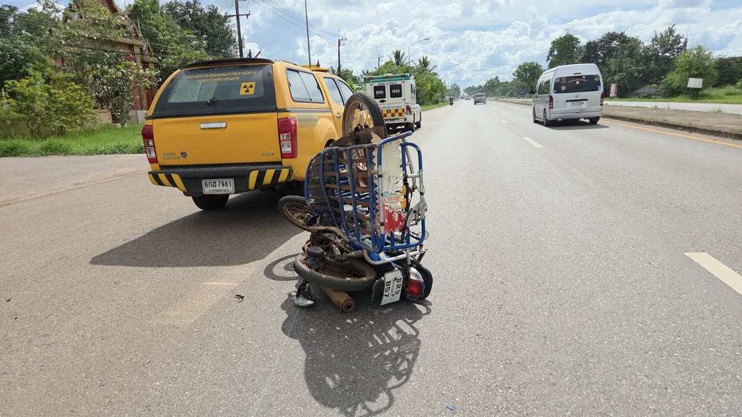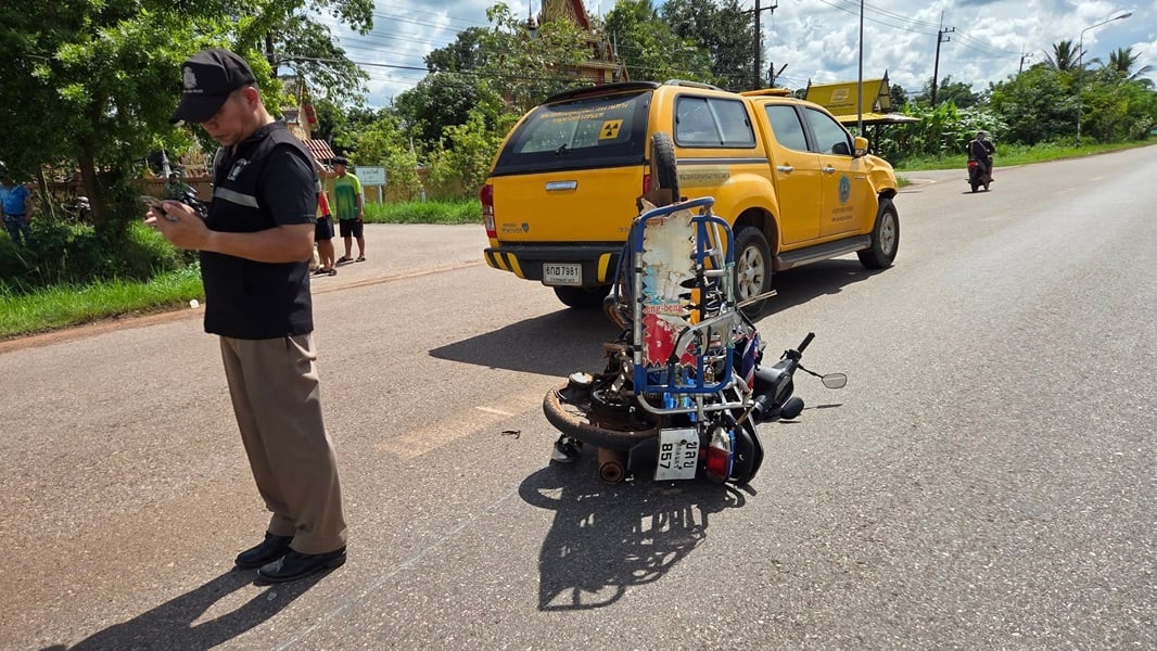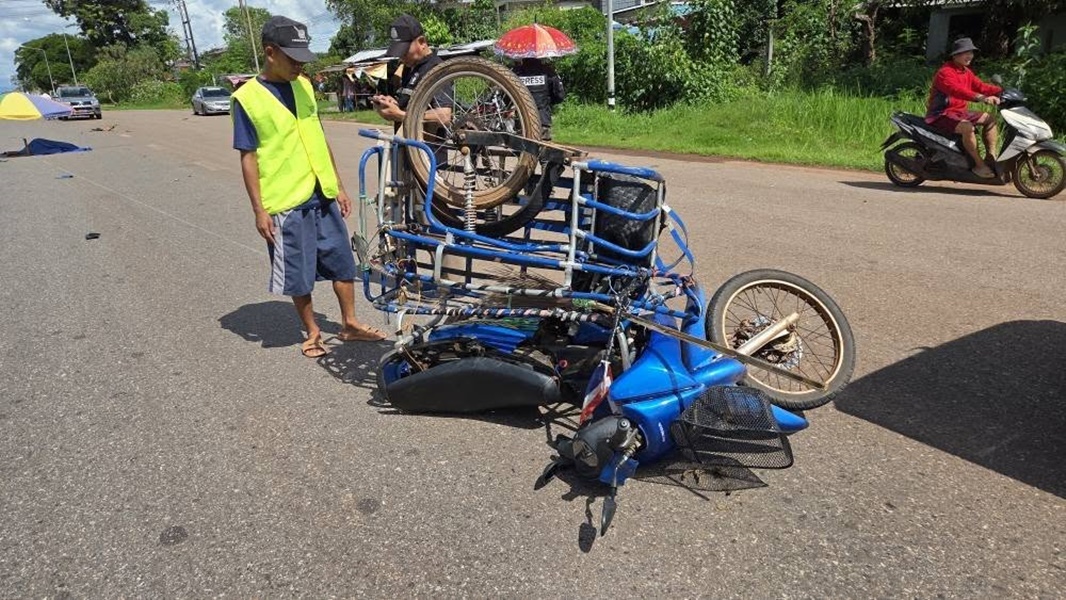 2 ตุลาคม 2568 - เวลาประมาณบ่ายโมงเศษ วันที่ 1 ตุลาคม ร.ต.อ.สิทธิพล วงศ์นิโลบล รองสารวัตรสอบสวน สภ.เมืองนครพนม ได้รับแจ้งว่ามีอุบัติเหตุรถยนต์เฉี่ยวชนรถจักรยานยนต์พ่วงข้างบนทางหลวงแผ่นดินหมายเลข 22 (ถนนนิตโย) สายนครพนม-สกลนคร ฝั่งขาออกเมืองบริเวณสี่แยกยูเทิร์นศูนย์เก่าลาวอพยพ บ้านนาโพธิ์ หมู่ 5 ต.บ้านผึ้ง อ.เมืองนครพนม จึงพร้อมด้วยแพทย์เวรโรงพยาบาลนครพนม และเจ้าหน้าที่กู้ชีพกู้ภัย ร่วมตรวจสอบที่เกิดเหตุ