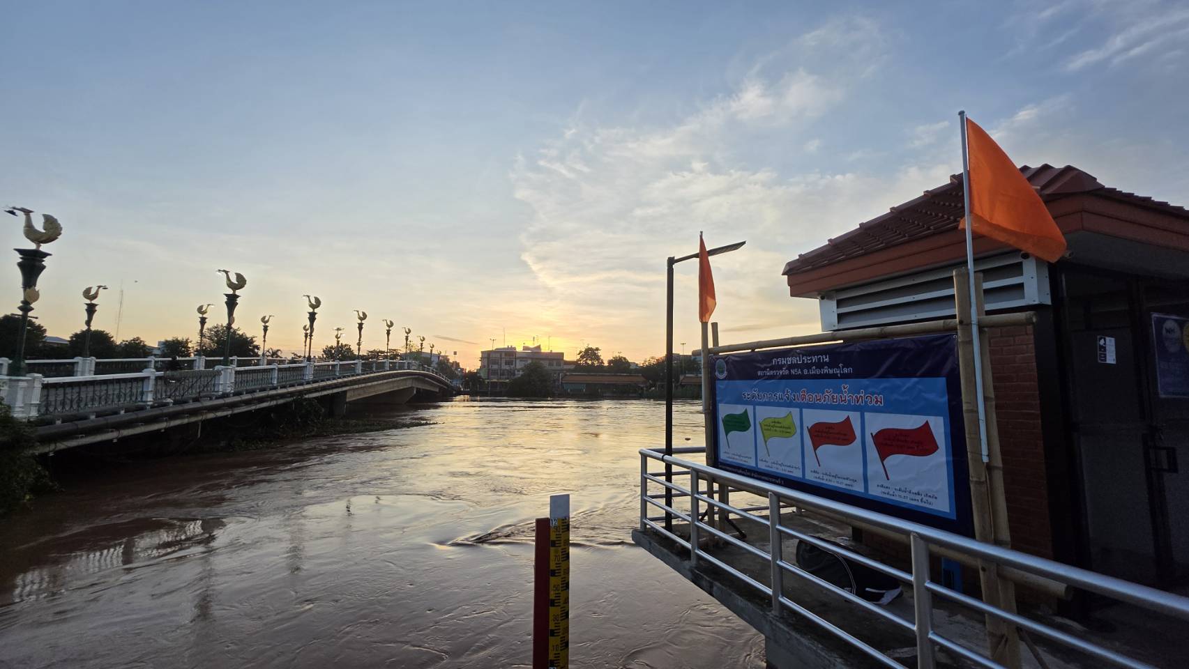 3 ต.ค. 2568 – ผู้สื่อข่าวจังหวัดพิษณุโลกรายงานว่า เมื่อเวลา 06.30 น. สถานการณ์น้ำในแม่น้ำน่านที่ไหลผ่านเมืองพิษณุโลก เช้านี้ที่สถานีวัดระดับน้ำ N5A เชิงสะพานเอกาทศรถ อยู่ที่ระดับ 10.18 เมตร จากจุดวิกฤติ 10.36 เมตร