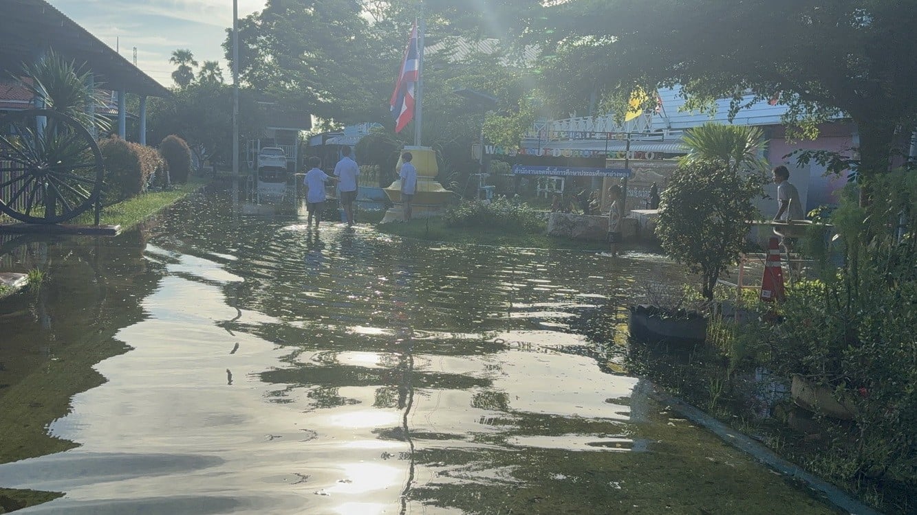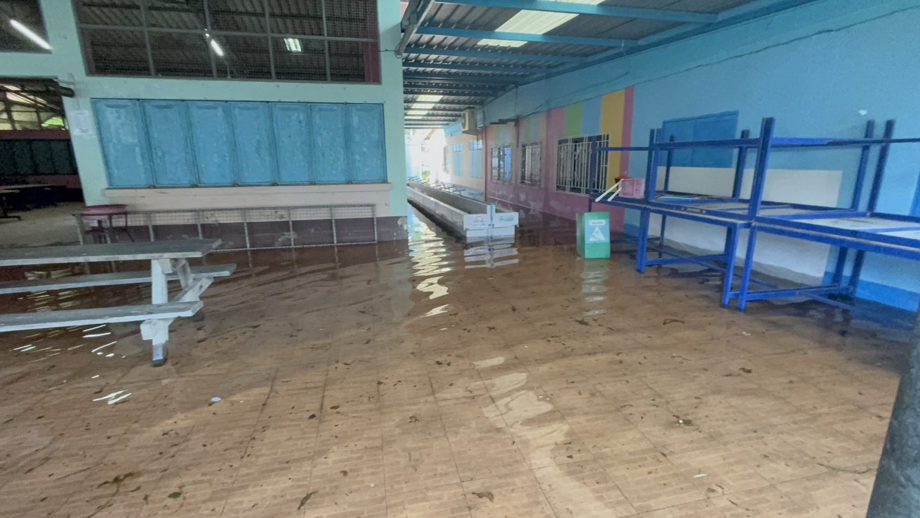 6 ต.ค. 2568 – ผู้สื่อข่าวรายงานสถานการณ์น้ำท่วม ที่บริเวณโรงเรียนวัดตาลเจ็ดช่อ ตำบลตลาดกรวด อำเภอเมือง จังหวัดอ่างทอง พบว่ามีน้ำเจ้าพระยาไหลซึมผุดลอดใต้เขื่อนเอ่อล้นเข้าในพื้นที่โรงเรียนนักเรียนเดินลุยน้ำท่วมสูง 20-30 เชนติเมตร เข้าโรงเรียนส่วนใช้ไดโว่สูบน้ำออกจากห้องเรียนพร้อมย้ายนักเรียนที่เรียนอยู่ชั้นล่างขึ้นไปด้านบนสองของโรงเรียน โชคยังดี วันนี้เป็นวันสอบสุดท้าย ปรากฎว่านักเรียนที่เดินทางมาโรงเรียนพบเห็นน้ำท่วม ต่างตื่นเต้นและออกมาเดินวิ่งเล่นน้ำที่ม่วมขังอย่างสนุดสนาน จนครูต้องออกมาเตือนเพื่อให้ขึ้นไปด้านบนของเรียนเพื่อป้องกันเสื้อผ้าเปียกปอนและลื้นล้มได้รับบาดเจ็บ และเร่งเก็บสิ่งของขึ้นไว้บนโต๊ะ