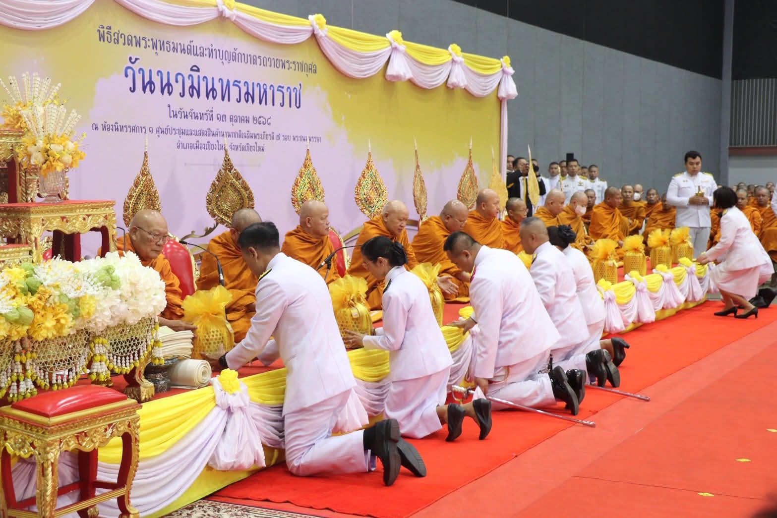 13 ต.ค. 2568 – ที่ศูนย์ประชุมและแสดงสินค้านานาชาติเฉลิมพระเกียรติ 7 รอบพระชนมพรรษา อำเภอเมือง จังหวัดเชียงใหม่ นายทศพล เผื่อนอุดม ผู้ว่าราชการจังหวัดเชียงใหม่ พร้อมเจ้านายฝ่ายเหนือนำส่วนราชการ ศาล ทหาร ตำรวจและพสกนิกรชาวจังหวัดเชียงใหม่ทุกหมู่เหล่าร่วมในพิธีน้อมรำลึกถึงวันคล้ายวันสวรรคต ของพระบาทสมเด็จพระบรมชนกาธิเบศร มหาภูมิพลอดุลยเดชมหาราช บรมนาถบพิตร พระมหากษัตริย์ไทย รัชกาลที่ 9 แห่งราชวงศ์จักรี เนื่องใน “วันนวมินทรมหาราช” ประจำปี 2568
