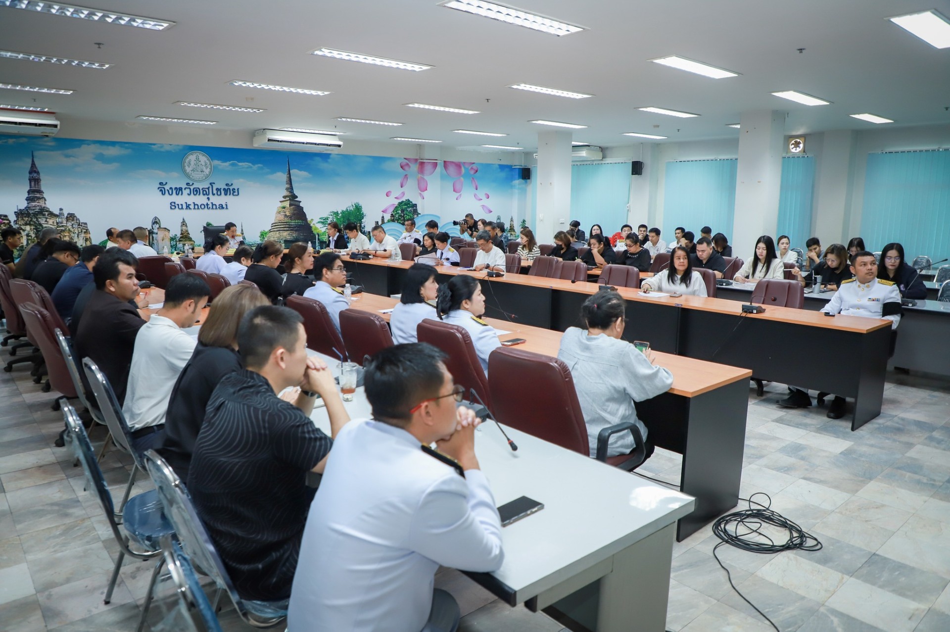 26 ต.ค.2568 – ที่ห้องประชุมชั้น 4 ศาลากลางจังหวัดสุโขทัย วันนี้ (26 ต.ค.) นายนพฤทธิ์ ศิริโกศล ผู้ว่าราชการจังหวัดสุโขทัย พร้อมหัวหน้าส่วนราชการ คณะกรรมการฯ และผู้เกี่ยวข้อง ได้จัดประชุมเร่งด่วนเพื่อพิจารณาปรับรูปแบบการจัดงานประเพณีลอยกระทงฯให้เหมาะสม ภายหลังสำนักพระราชวังออกประกาศการสวรรคตของ สมเด็จพระนางเจ้าสิริกิติ์ พระบรมราชินีนาถ พระบรมราชชนนีพันปีหลวง เมื่อวันที่ 24 ตุลาคม 2568 โดยมีการทบทวนมติที่ประชุมเมื่อวันที่ 25 ตุลาคม 2568 เพื่อให้เกิดผลกระทบต่อผู้เกี่ยวข้องให้น้อยที่สุด