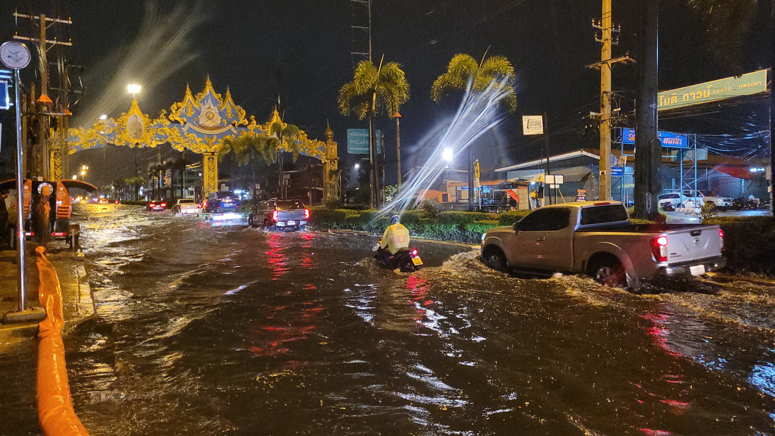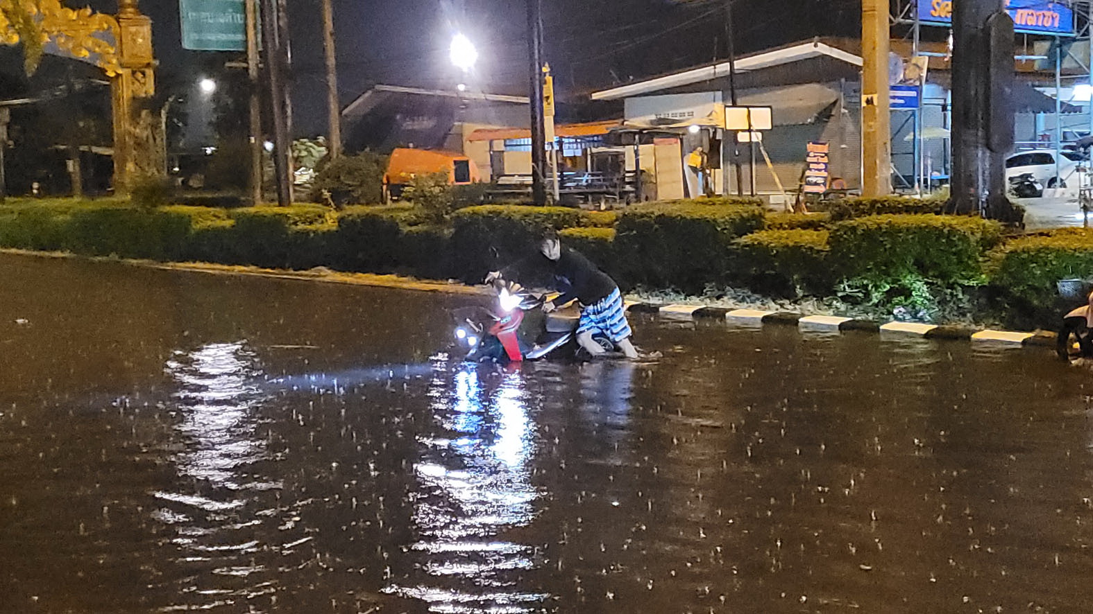 จากการสอบถามผู้ขับขี่รถจักรยานยนต์ ให้ข้อมูลว่า ตนเองขี่รถจักรยานยนต์มาจากแพรกษา ซอย 10 ก่อนมาเจอน้ำท่วมซึ่งช่วงกลาง ๆ ทางมีระดับน้ำสูงถึงหัวเข่า ทำให้รถจักรยานยนต์ตนเองเครื่องยนต์ดับกลางถนน