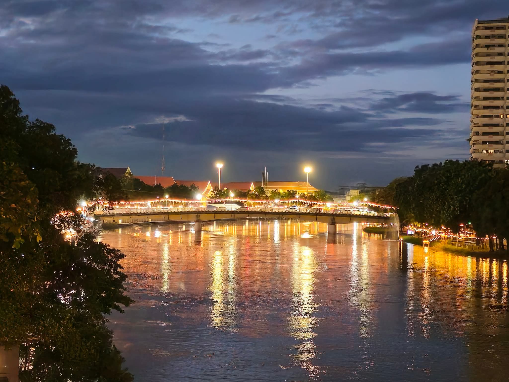 ส่วนริมน้ำปิงก็มีนักท่องเที่ยวมาลอยกระทงสายและกระทงปกติที่มีการทำด้วยวัสดุธรรมชาติและขนมปังเพื่อให้ย่อยสลายง่าย จำหน่ายให้นักท่องเที่ยวราคาตั้งแต่ 20 บาทขึ้นไป ทำให้สายน้ำปิงสว่างไสวตลอดคืน และคืนวันนี้มีการทำบุญตักบาตร"เป็งปุ๊ด"ที่วัดอุปคุต บนถนนท่าแพเนื่องจากวันพระตรงกับวันพุธ เป็นไฮไลท์เพิ่มมาอีกกิจกรรม ส่วนวันที่ 5 พ.ย.ไฮไลท์เป็นการประกวดขบวนกระทงเล็ก วันที่ 6 พ.ย. การประกวดขบวนแห่กระทงใหญ่ชิงถ้วยพระราชทานฯ, รวมทั้งการแสดง ประกอบแสง สี เสียง และสื่อผสม กลางลำน้ำปิง, การปล่อยกระทงสายล้านนาสีสันแห่งสายนที และศิลปวัฒนธรรมต่างๆ