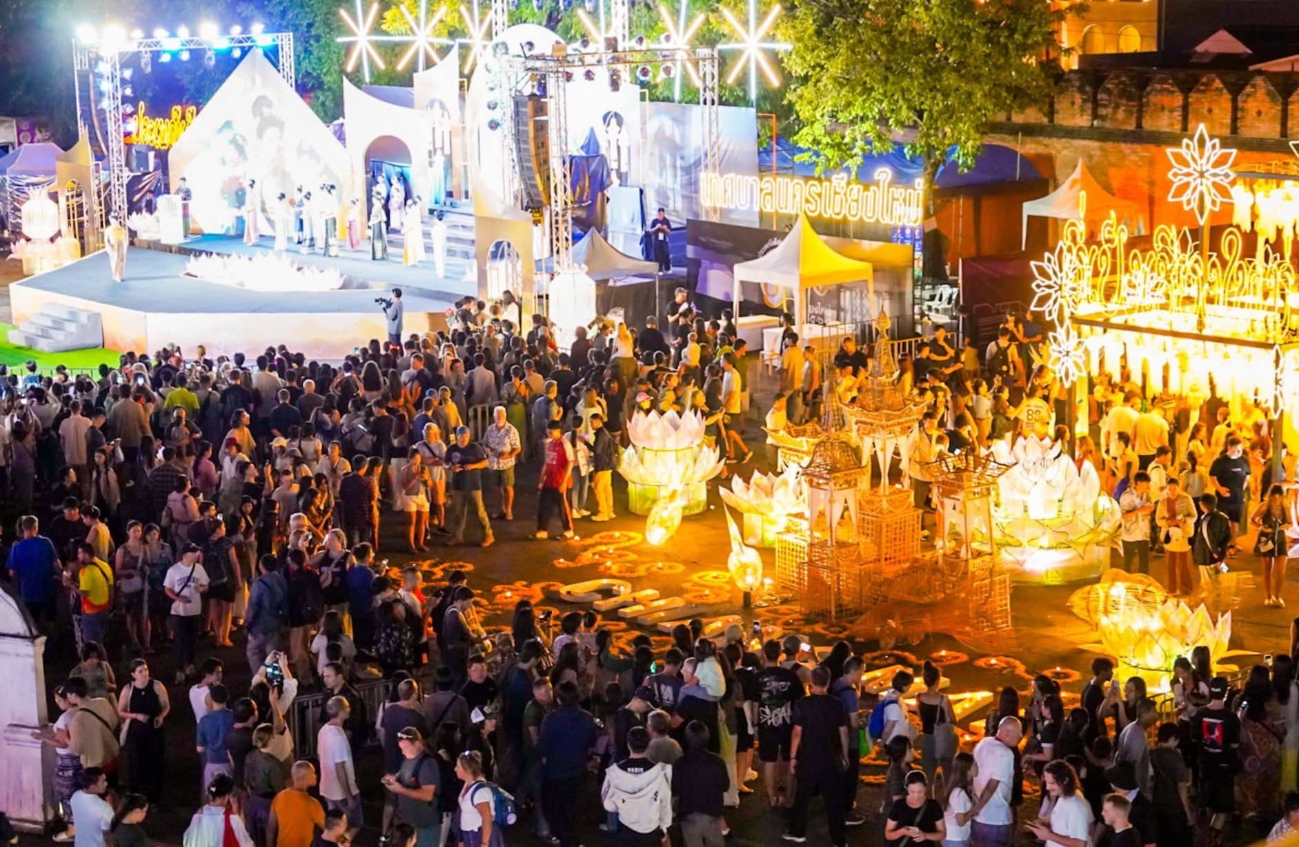 บรรยากาศเทศกาลลอยกระทงหรือ 'ยี่เป็งเชียงใหม่' คึกคักตลอดคืน นักท่องเที่ยวล้นหลามชมความงดงามประเพณีล้านนา ปรับรูปแบบ ถวายความอาลัย น้อมสำนึก 'พระพันปีหลวง'