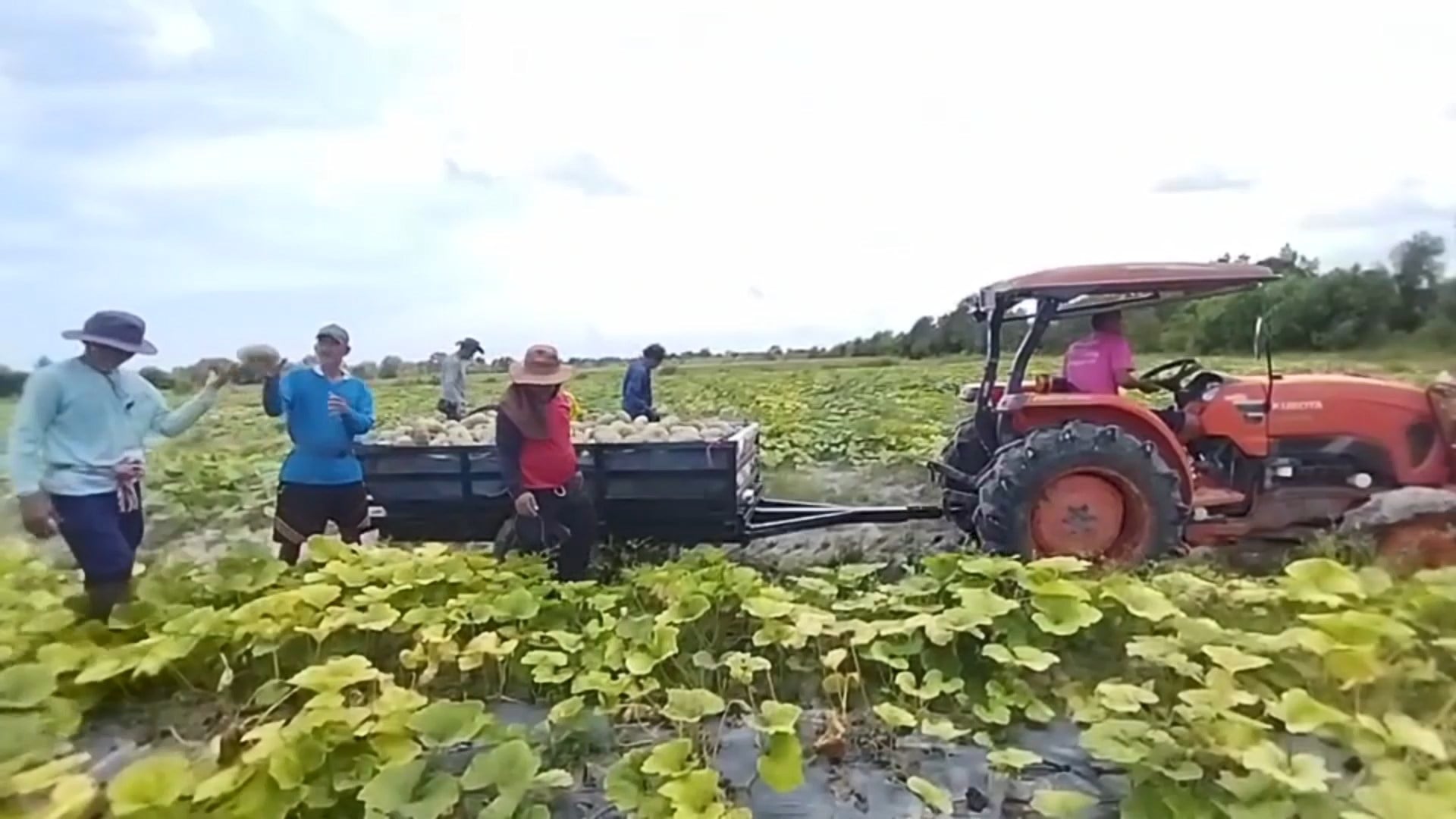 เกษตรกรเมืองสงขลา ใช้รถแทรกเตอร์ 2 คัน ร่วมลงแขกเก็บเกี่ยวผลผลิตฟักทอง 10 ไร่ ครึ่งวัน ได้ผลผลิตกว่า 8 ตัน สร้างรายได้กว่า 80,000 บาท เกษตรอำเภอเมืองสงขลา เผยพื้นที่ตรงนี้ เกษตรกรจะปลูกพืชผักหมุนเวียนกันไปตลอดปี มีการวางแผนการปลูก สามารถเก็บเกี่ยวได้ทันก่อนที่จะเข้าสู่ฤดูฝนปลายปีนี้