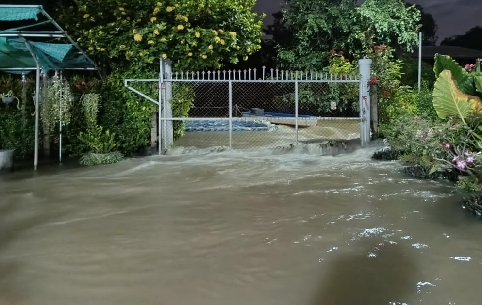 เขื่อนเจ้าพระยาเพิ่มระบายน้ำเป็น2,700 ลบ.ม./วินาที ทำน้ำท้ายเขื่อนสูงขึ้นกว่า 37 เซนติเมตร พัดคันกั้นน้ำจากกระสอบทรายพังหลายจุด กระแสน้ำแรงทะลักเข้าท่วมหมู่บ้านกลางดึก ชาวบ้านเก็บของหนีน้ำจ้าละหวั่น