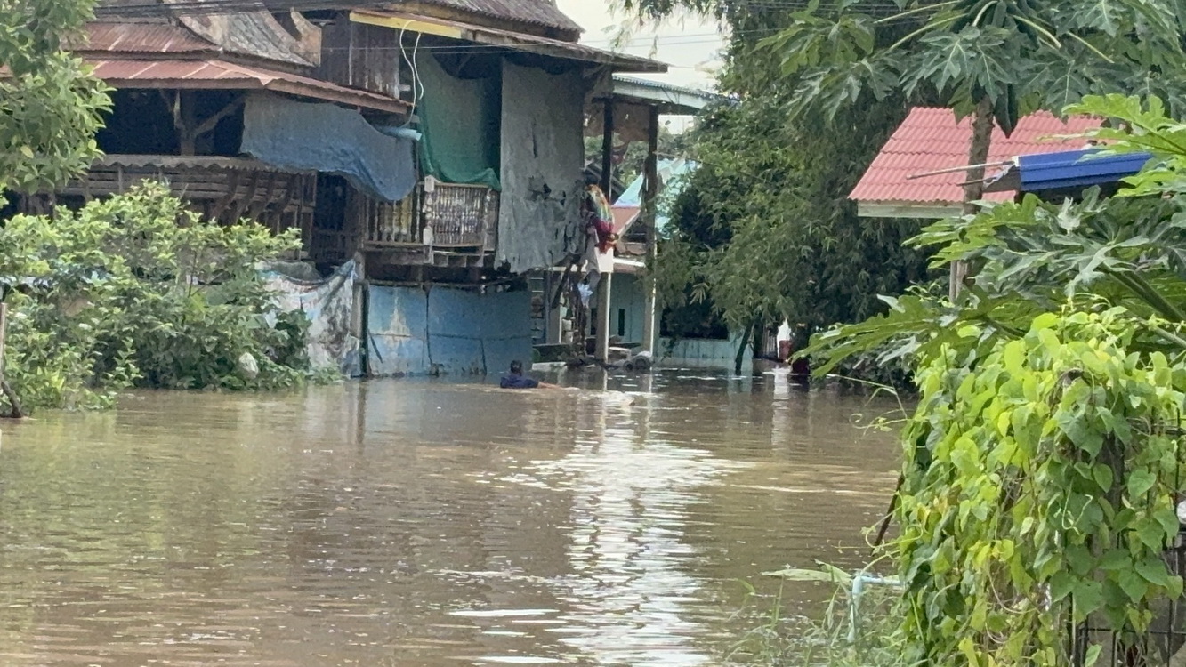 ด้านนายฉัตรชัย สถาพร ผู้ใหญ่บ้านหมู่5 เล่าให้ฟังว่า เมื่อช่วงเช้ามืดระดับน้ำเพิ่มขึ้นอย่างรวดเร็ว ทำให้แนวพนังกั้นน้ำริมน้ำทรุดตัวลง และไหลท่วมชุมชนทั้งหมด ทั้งที่เมื่อวานนี้ในชุมชนแห่งนี้น้ำไม่ท่วม และสามารถอาศัยอยู่ได้ตามปกติ แต่เข้าใจเพราะเป็นธรรมชาติของคนอยู่ริมน้ำ