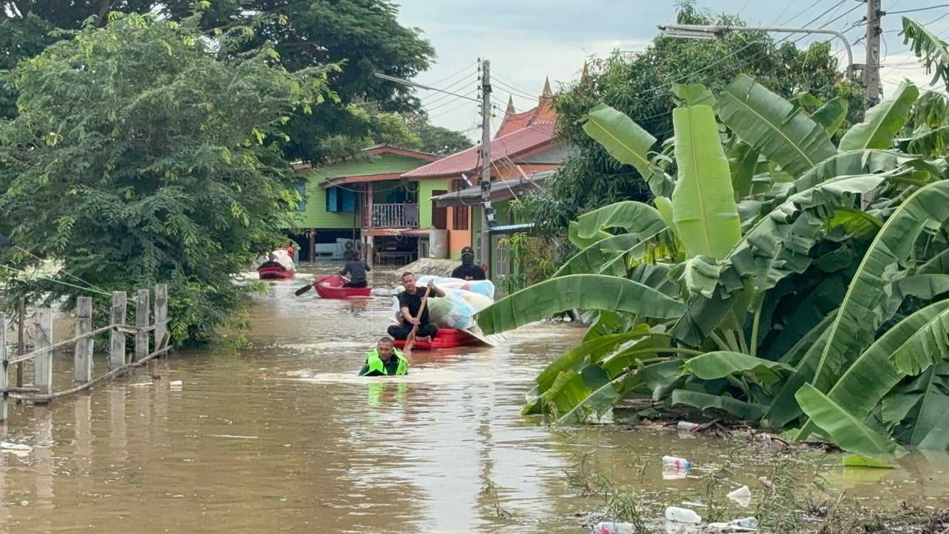 6 พฤศจิกายน 2568 - สถานการณ์น้ำที่เพิ่มขึ้นอย่างต่อเนื่องทำให้คันกั้นน้ำคลองโผงเผงบริเวณหมู่ 5 ตำบลโผงเผง อำเภอป่าโมก จังหวัดอ่างทอง เกินแรงต้านทำให้พังทะลายลงมา เมื่อเช้ามืดที่ผ่านมา ทำให้น้ำจากคลองโผงเผงไหลท่วมชุมชนทั้งเจ้าหน้าที่อำนวยความสะดวกและให้ความช่วยเหลือชาวบ้านชุมชน หมู่ 5 ตำบลโผงเผง อำเภอป่าโมก จังหวัดอ่างทอง หลังระดับน้ำในคลองโผงเผงเพิ่ม และดันแนวพนังกั้นน้ำบริเวณ หมู่ 5 ตำบลโผงเผง อำเภอป่าโมก ทรุดตัวลง