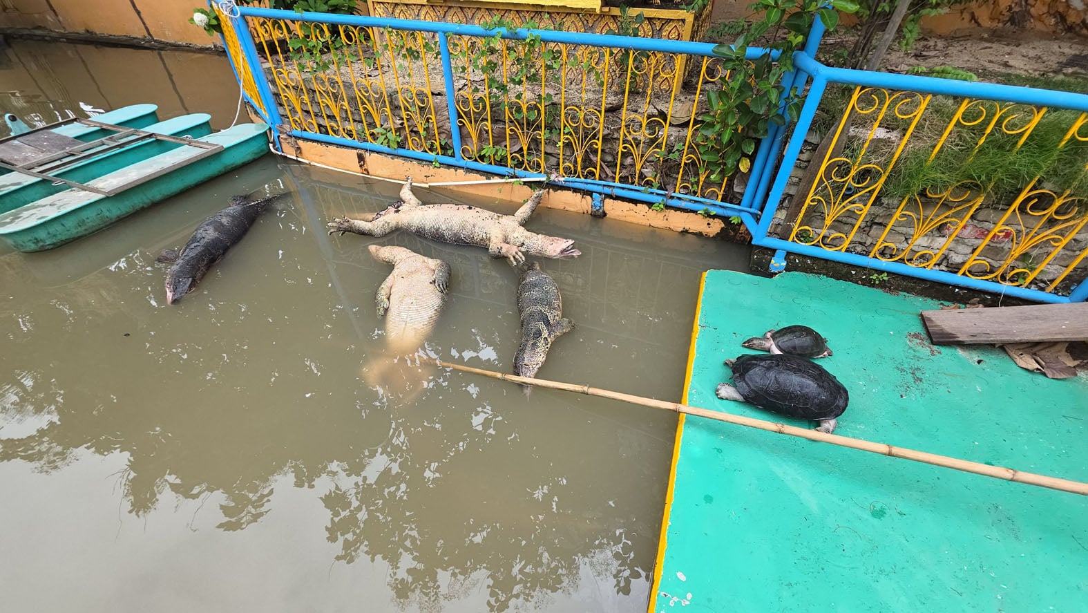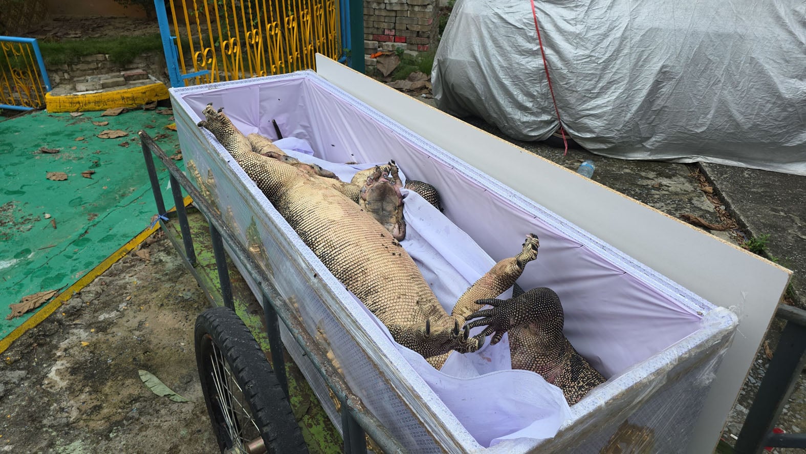 ภาพที่เห็นทำเอาทั้งพระและเจ้าหน้าที่ถึงกับตกใจ เมื่อพบซากตัวเงินตัวทองขนาดใหญ่ลอยตาย 4 ตัว สภาพเริ่มเน่า ส่งกลิ่นเหม็นคละคลุ้ง พร้อม เต่าตายอีก 2 ตัว จึงช่วยกันใช้เชือกและอุปกรณ์งมขึ้นจากบ่ออย่างทุลักทุเล ทางเจ้าอาวาสได้เตรียมโลงศพมาบรรจุ เพื่อนำไปเผาที่เมรุภายในวัด (ฌาปนกิจ) หากให้เจ้าหน้าที่หรือพระนำไปทิ้งกลัวจะส่งผลกระทบหรือเดือดร้อนกับชาวบ้าน