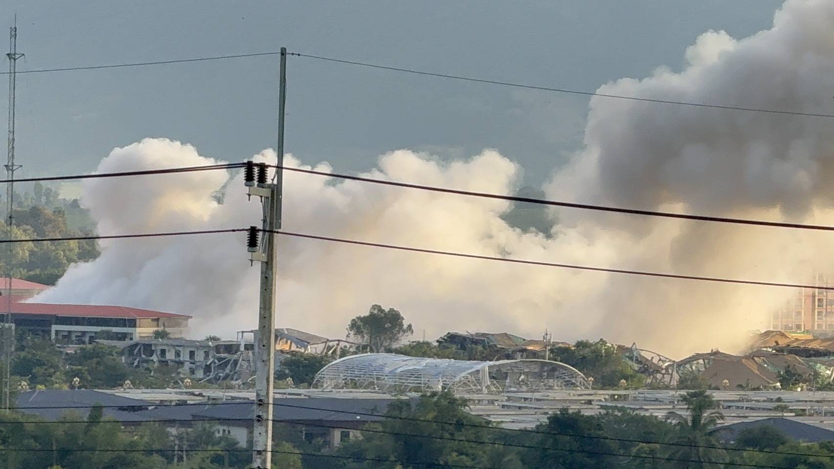 แต่การระเบิดครั้งนี้ ฝ่ายทหารเมียนมาเปลี่ยนจุดใหม่ ซึ่งใกล้อาคารสูงอีกแห่งหนึ่งไม่ไกลไปจากโรงแรม 5 ชั้น ที่ถูกวางระเบิดทำลาย ขณะที่อาคารสูง 5 ชั้น ที่ชาวบ้านบอกว่าเป็นโรงแรมนั้น เริ่มเอียง ส่อเค้าจะถล่มลงมา เพราะสภาพอาคารแตกร้าว และพังเสียหายด้วยแรงระเบิด
