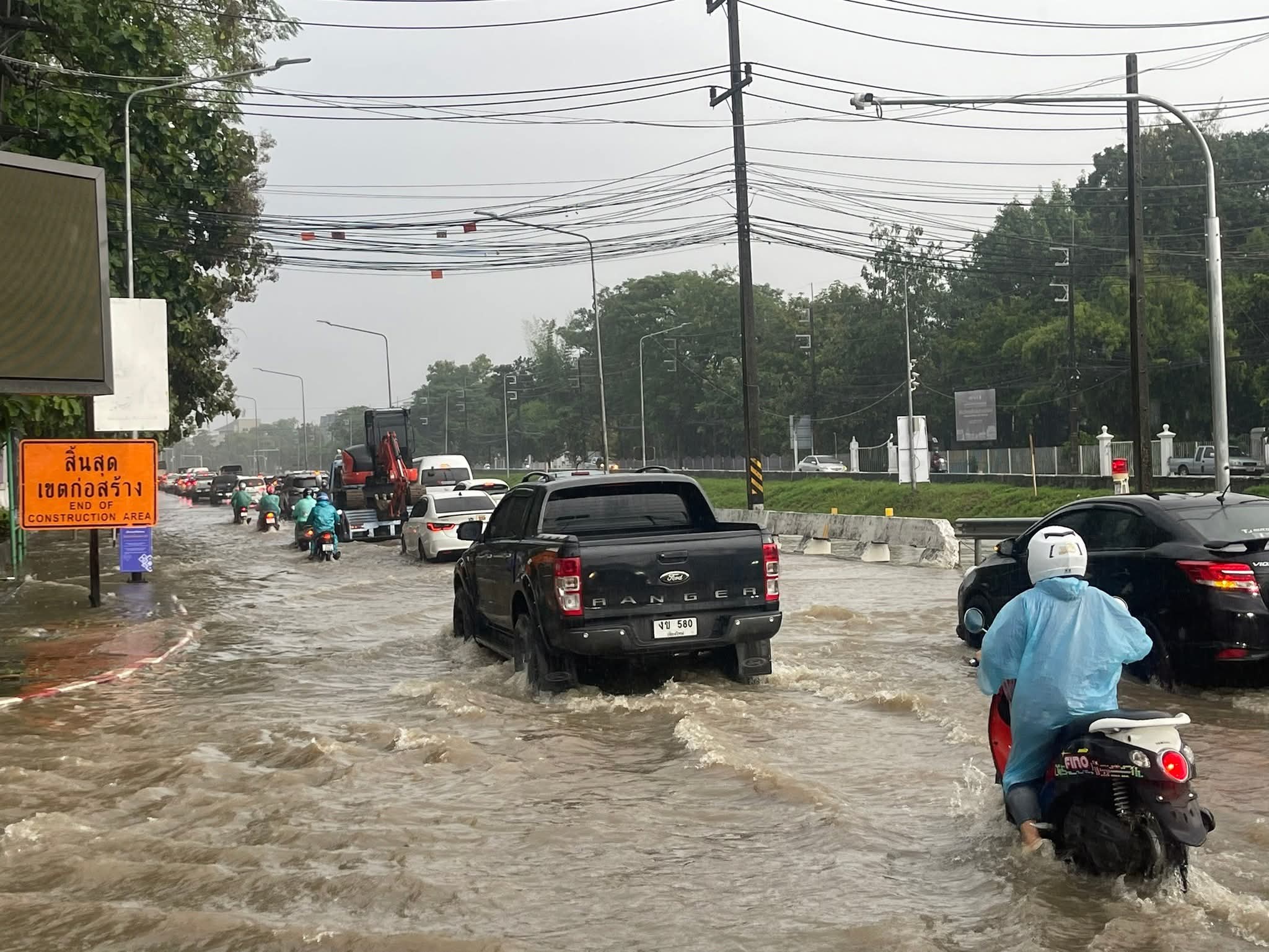 14 พ.ย. 2568 – ผู้สื่อข่าวจังหวัดเชียงใหม่รายงานว่า เกิดฝนตกหนักตั้งแต่เช้าตรู่ ทำให้น้ำท่วมขังบริเวณกว้างในตัวเมืองเขียงใหม่ โดยเฉพาะจุดซ้ำซากที่ใกล้โรงพยาบาลสวนดอกไปทางคูเมือง บริเวณแยกข่วงสิงห์ถนนซุปเปอร์ไฮเวย์ แยกตลาดต้นพยอมถนนสุเทพและคลองชลประทาน น้ำจากดอยสุเทพทะลักลงมาประกิบกับเป็นจุดที่กำลังซ่อมแซมเส้นทางและท่อระบายน้ำรถหนาแน่นอยู่แล้วและอีกหลายจุดโดยเฉพาะจุดที่ท่วมซ้ำซากหลายชุมชนทำให้การจราจรติดขัด เนื่องจากเป็นช่วงเดินทางตอนเช้า บางจุดรถเล็กไม่สามารถผ่านได้ เจ้าหน้าที่ต้องเร่งระบายน้ำ หลายคนมีการแชร์ภาพน้ำท่วมขังหลายจุดเกือบทั้งเมืองบนโลกโซเชียล