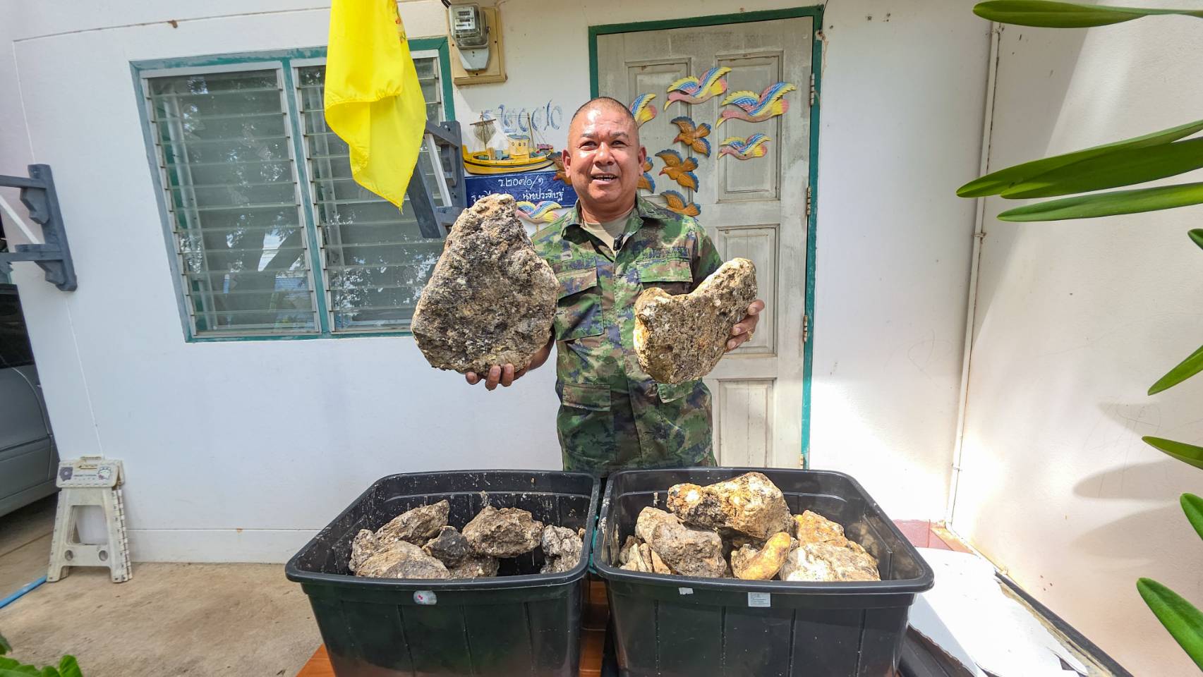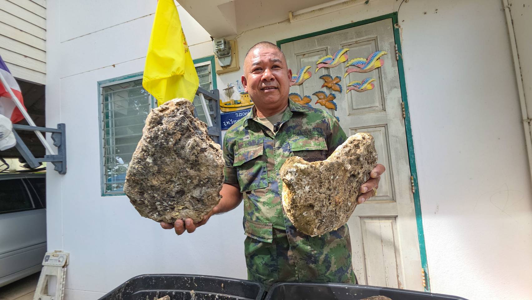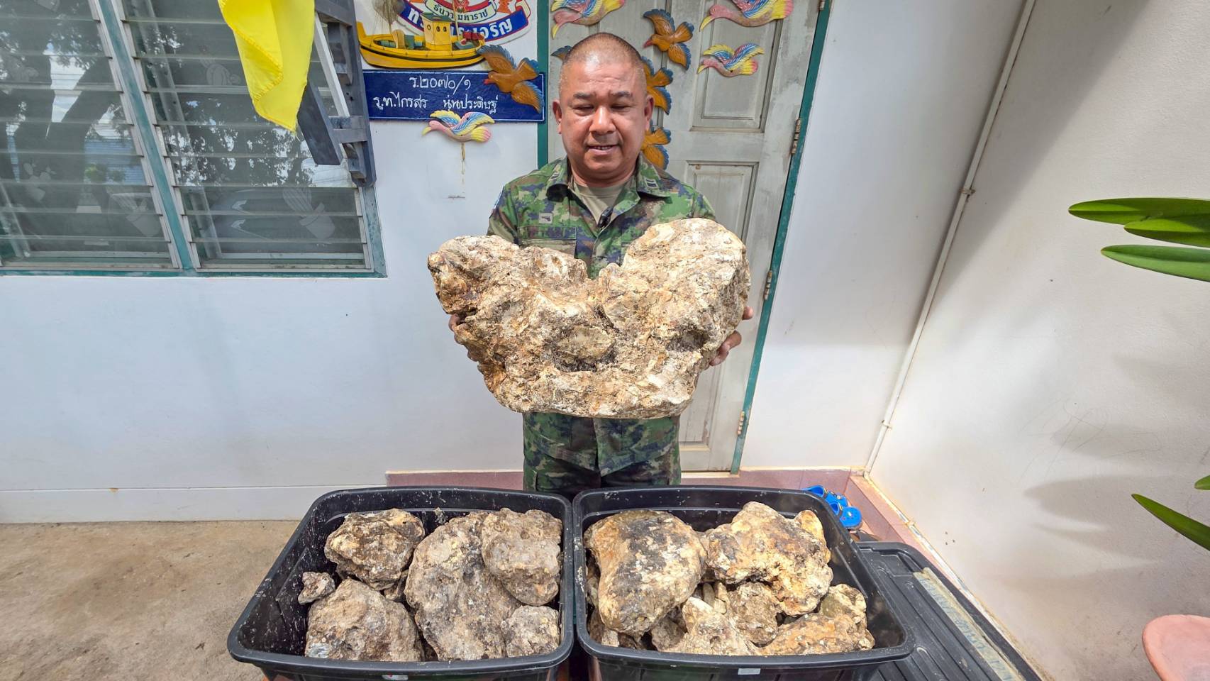 นายทหารเรือ ลากอวนติดสมบัติล้ำค่าในทะเล “อ้วกวาฬ” หนัก 55 กิโลกรัม เก็บรักษาไว้อย่างดีมาตลอด 9 ปีไม่เคยเผยแพร่ให้เป็นข่าว ตอนนี้เศรษฐกิจไม่ดี ตัดสินใจขายใน 55 ล้านบาท
