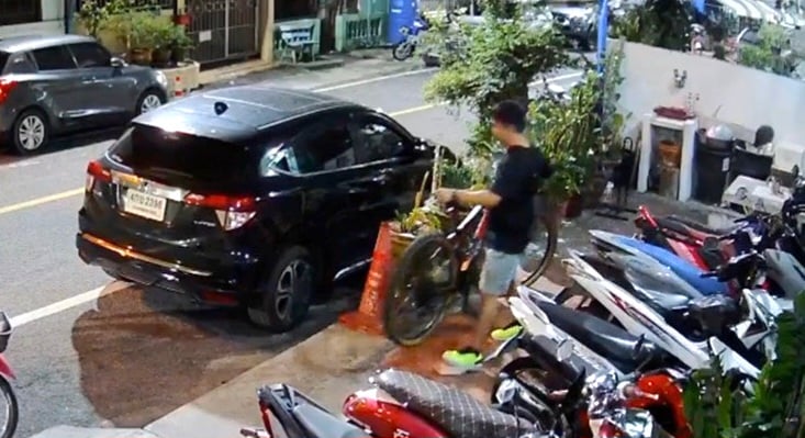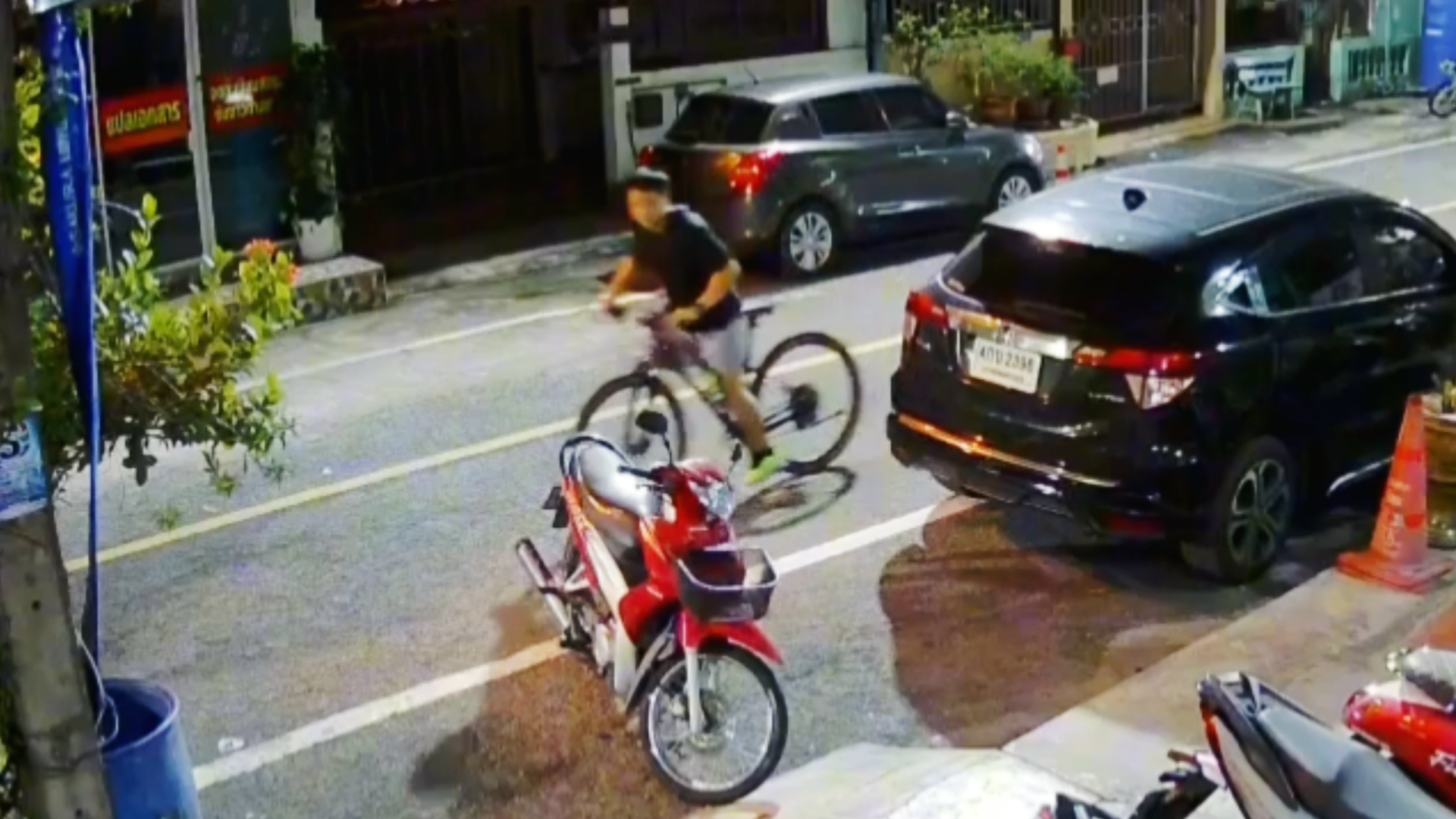กล้องวงจรปิด ได้บันทึกเหตุการณ์ขณะคนร้ายก่อเหตุไว้ได้อย่างชัดเจน เมื่อช่วงเวลา 04.08 น.วันที่ 12 พ.ย.68 โดยคนร้ายเป็นชายไทย รูปร่างท้วม แต่งกายดี คล้ายชุดกีฬา สวมรองเท้าผ้าใบสีเขียว เดินวนดูลาดเลาอยู่หน้าอพาร์ทเม้นท์นานกว่า 10 นาที ก่อนอาศัยจังหวะปลอดผู้คน ลงมือยกจักรยานของลูกบ้านออกไปที่ถนน แล้วปั่นหนีไปอย่างใจเย็น ราวกับเป็นของตัวเอง