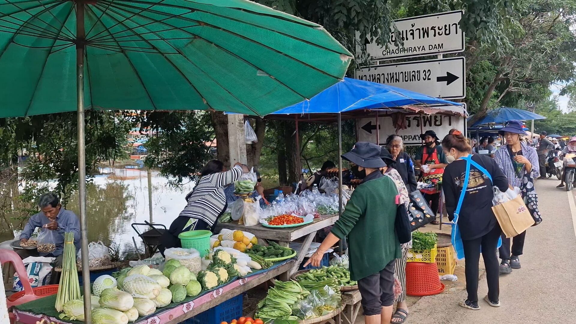 ส่วนที่ ต.โพนางดำออก แม่น้ำเจ้าพระยา บริเวณสะพานสรรพยา ลดระดับลงต่อเนื่อง แต่ยังล้นตลิ่ง โดยที่บริเวณตลาดนัดวัดวังสาคร ตำบลโพนางดำออก น้ำยังท่วมตลาดสูงประมาณ 30 เซนติเมตร พ่อค้าแม่ค้า ได้ย้ายแผงค้าขึ้นไปตั้งขายกันริมถนนคันคลองมหาราช และยังเปิดตลาดค้าขายกันปกติ ซึ่งก็ช่วยให้ชาวบ้านที่ประสบภัยในพื้นที่ ยังสามารถออกไปซื้อของกินในตลาดใกล้บ้านได้