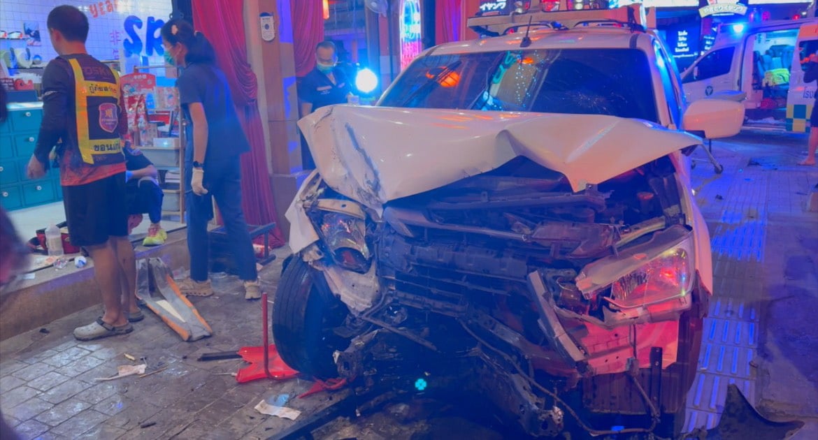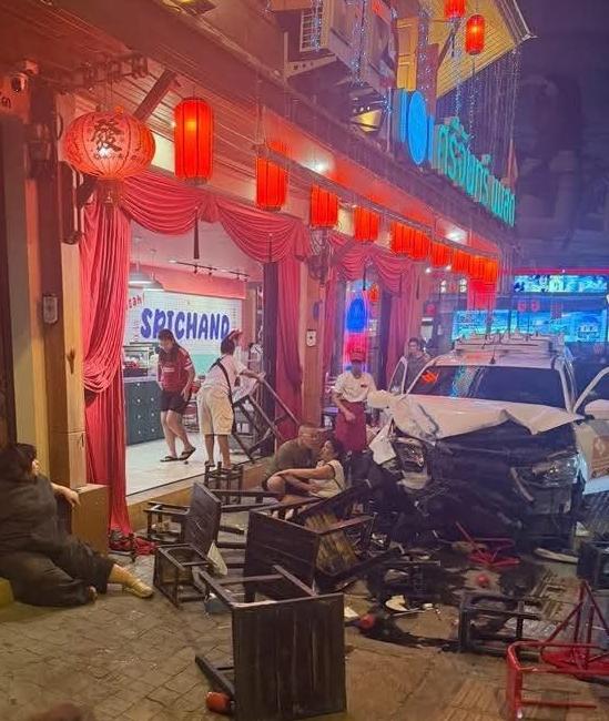 ที่เกิดเหตุพบรถยนต์กระบะสีขาว หมายเลขทะเบียน 2ฒฮ-505 กรุงเทพมหานคร พุ่งชนขึ้นมาบนร้านโดยมีลูกค้าที่นั่งรับประทานอาหารอยู่ได้รับบาดเจ็บจำนวนมาก เจ้าหน้าที่จึงเร่งนำตัวผู้ได้รับบาดเจ็บรวม 12 ราย นำส่ง รพ.เป็นการเร่งด่วน