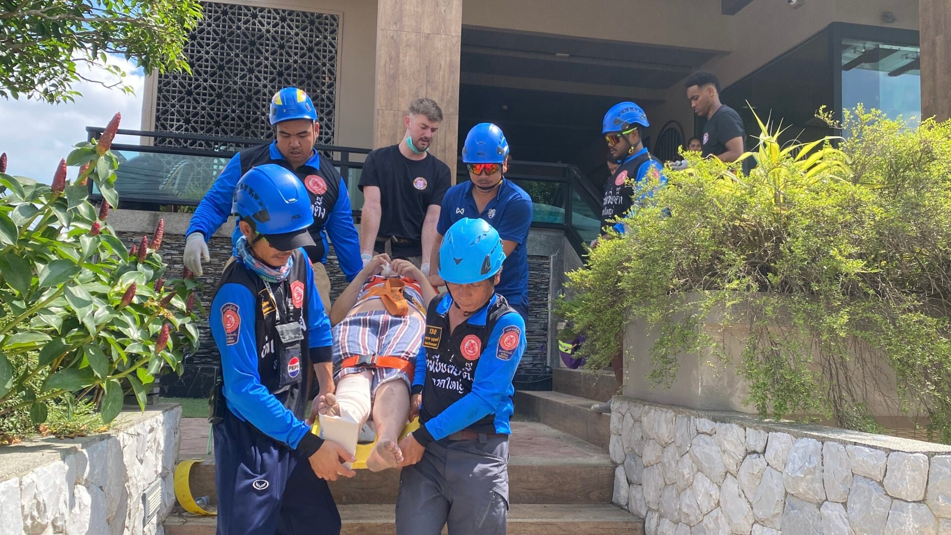 เมื่อไปถึงพบชายวัยรุ่นอายุ 17 ปี นอนอยู่บนจั่วใต้หลังคาด้านหน้าของโรงแรม ระดับชั้น 3 โดยยังรู้สึกตัวและปลอดภัย แต่มีอาการบาดเจ็บที่ข้อเท้าขวาผิดรูป