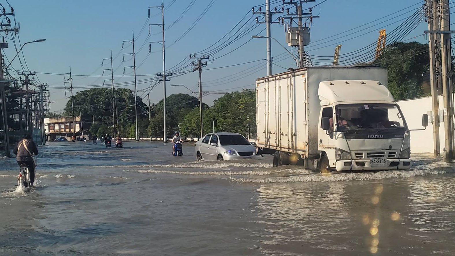สมุทรปราการเผชิญน้ำทะเลหนุนสูงช่วงเช้า ทำระดับน้ำเจ้าพระยาเอ่อล้นเข้าท่วมตลาดปากน้ำ–ถนนสายหลักหลายเส้นลึก 20–30 เซนติเมตร พ่อค้าแม่ค้าต้องลุยน้ำขายของ คาดสถานการณ์จะกลับสู่ปกติก่อนเที่ยง