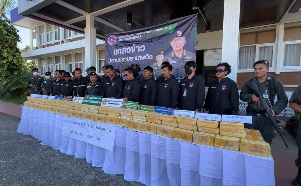 ตชด.ภาค 2 สกัดยาบ้าล็อตใหญ่กว่า 3 ล้านเม็ด รวบ 2 ผู้ต้องหาขณะลำเลียงจากบึงกาฬ มุ่งหน้าสระบุรี มูลค่ากว่า 100 ล้านบาท พบเป็นยาบ้า 999 ที่ส่วนใหญ่ระบาดเฉพาะภาคเหนือ คาดเปลี่ยนเส้นทางใช้สายอีสานเพราะอาจจะคิดว่ากำลังเจ้าหน้าที่ส่วนใหญ่ไปชายแดนกัมพูชา