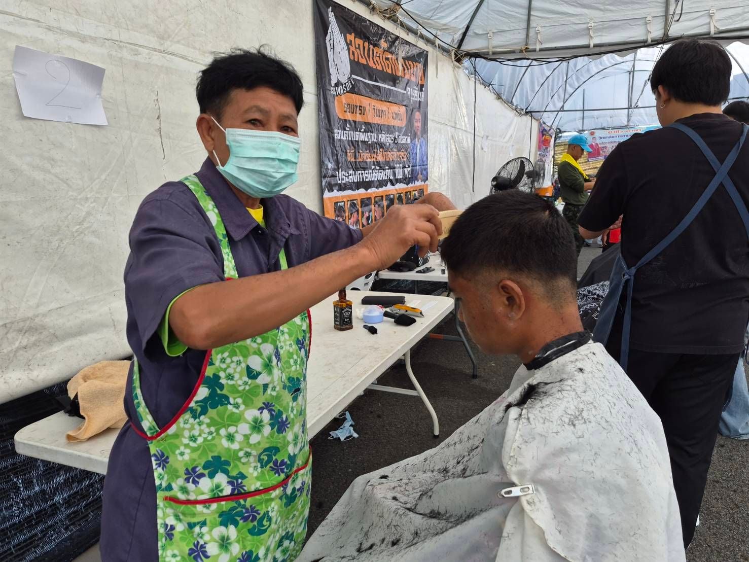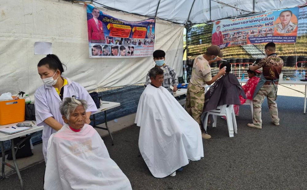 ส่วนราชการ อาสาสมัครภาคประชาชน และจิตอาสา ให้บริการตัดผมชาย-หญิงฟรี แก่ประชาชนผู้อพยพหนีภัยสู้รบ และเจ้าหน้าที่ ยังศูนย์พักพิงชั่วคราว จ.บุรีรัมย์ เพื่อสร้างรอยยิ้ม ความประทับใจ และผ่อนคลายความตึงเครียดจากสถานการณ์ชายแดนไทย-กัมพูชา