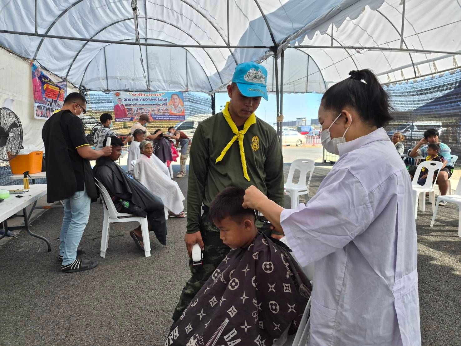 ซึ่งเป็นส่วนหนึ่งในกิจกรรมดูแลเยียวยาจิตใจ กิจกรรมนันทนาการ สร้างความผ่อนคลายความเครียด ลดความกังวล ให้กับเด็ก เยาวชน ผู้สูงอายุ คนพิการ และประชาชนผู้อพยพที่เข้ามาพักอาศัยอยู่ในศูนย์พักพิงชั่วคราว อ.เมือง จ.บุรีรัมย์ แห่งนี้ ที่ได้สร้างความประทับใจและรอยยิ้มดีใจ แก่ผู้อพยพที่ได้มาตัดผมทรงใหม่ และไม่ต้องเสียเงินไปตัดที่อื่น โดยในแต่ละวันจะมีประชาชนผู้อพยพ เข้ามารับบริการตัดแต่งทรงผมเฉลี่ยประมาณ 100 กว่าคนต่อวัน