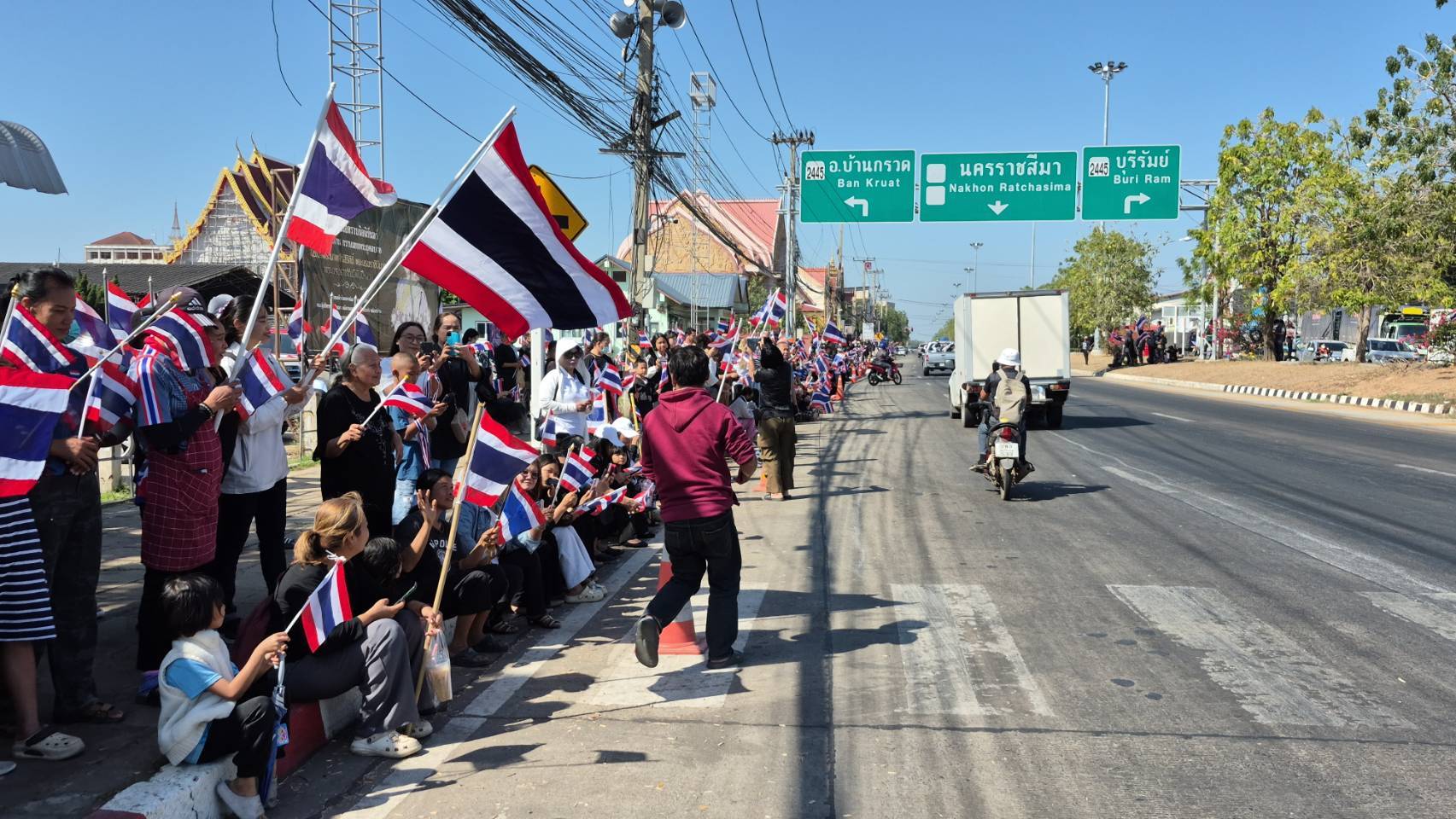 ปชช.อาลัยตลอดถนนสะบัดธงรับร่าง ‘จ่าเริง’ วีรบุรุษทหารกล้า พลีชีพ ‘เนิน350’ กลับบ้านเกิดที่บุรีรัมย์