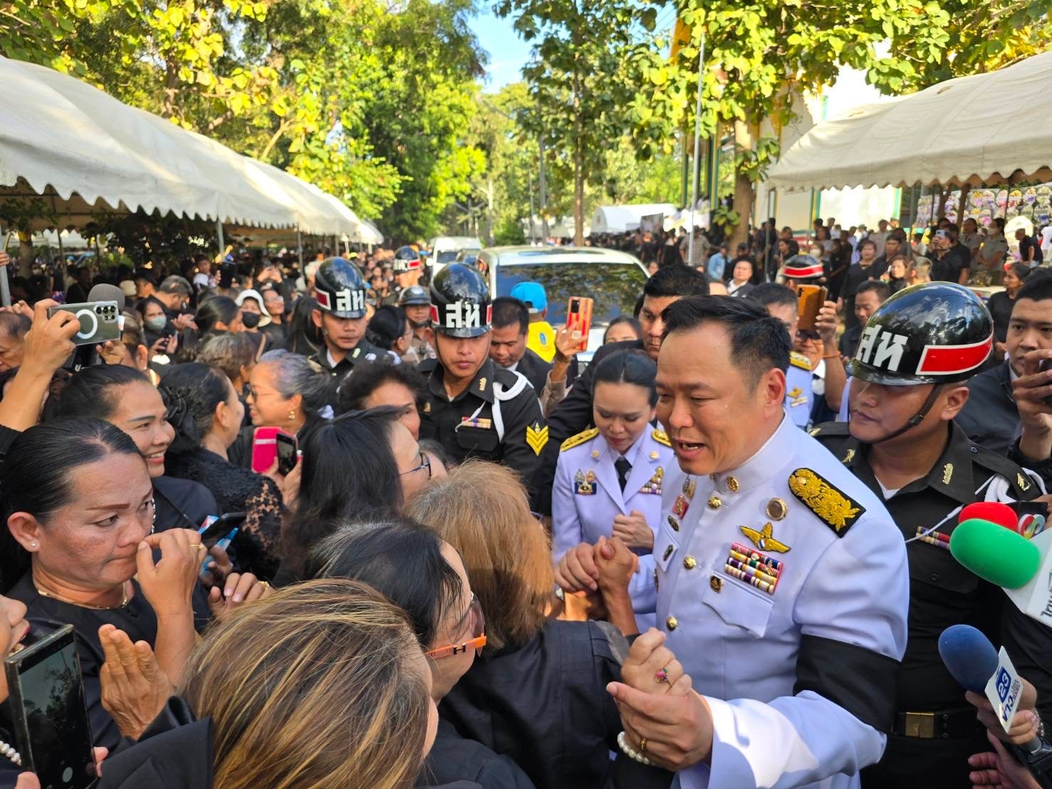 คนแน่นวัด! นายกฯอนุทิน เป็นประธานพิธีพระราชทานเพลิงศพจ่าเริง นักรบ 350 เพื่อนร่วมรบเผยเพลงที่จ่าเริง แต่งมาร้องให้ฟังครั้งแรกก่อนขึ้นเนิน 350 ระบุทุกครั้งออกรบจ่าเริงจะเอาธงชาติคลุมเหมือนซุปเปอร์แมน เสียงสุดท้ายก่อนออกรบ คือโทรศัพท์หาลูกบอกกลับไปจะพาไปกิน KFC