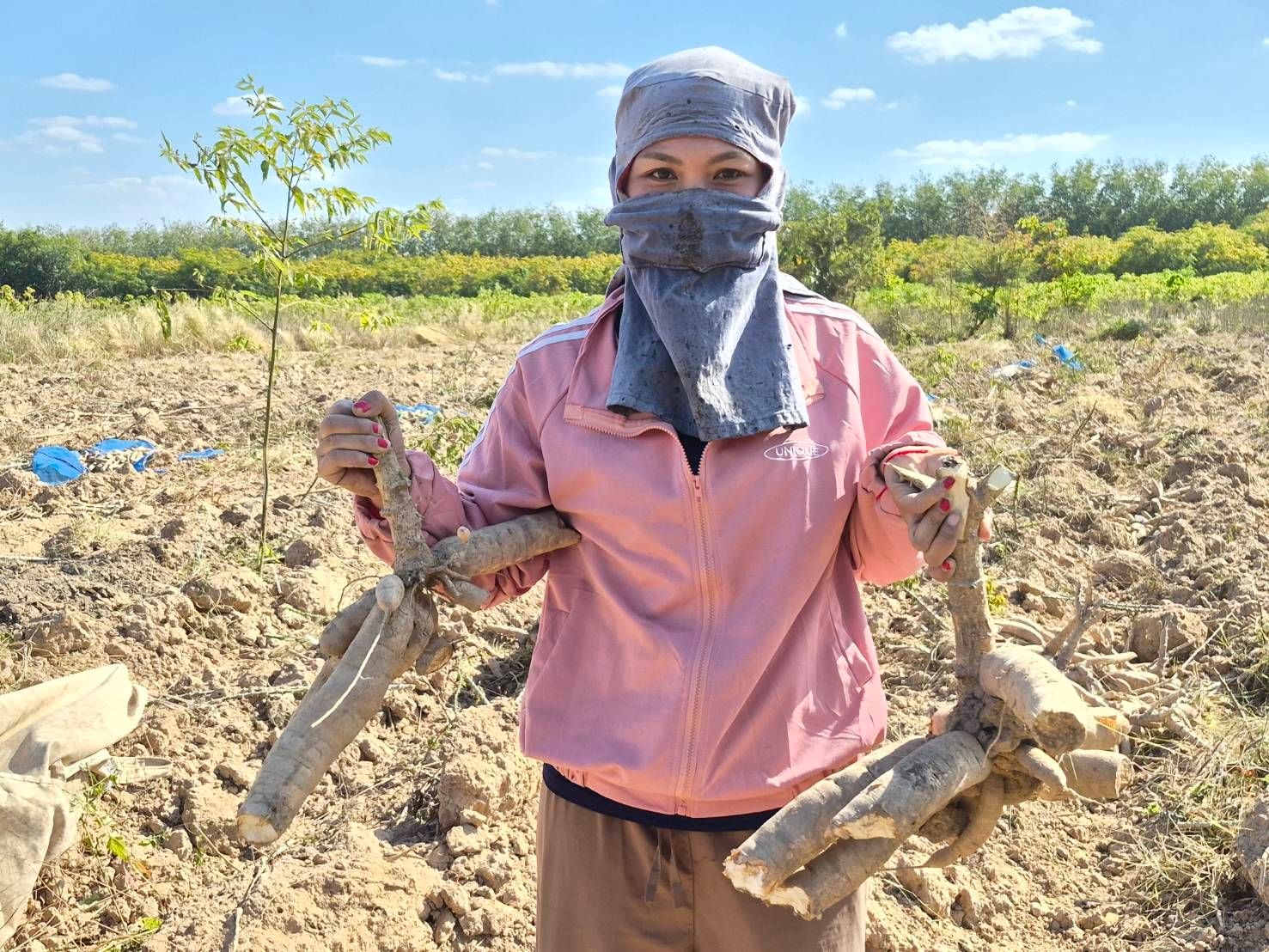 เช่นเดียวกับ น.ส.จินตนา กะการดี อายุ 31 ปี เกษตรกรชาวไร่มันสำปะหลัง ที่วันนี้ได้ว่าจ้างเพื่อนบ้านให้มาเก็บกู้มันสำปะหลังจำนวน 5ไร่ ที่ปลูกไว้บริเวณใกล้กับชายแดน กล่าวยอมรับว่า ปีนี้ผลผลิตมันสำปะหลังมที่ปลูกไว้ไม่ค่อยดี เนื่องจากตั้งแต่ปลูกมันสำปะหลังได้ใส่ปุ๋ยเพียงครั้งเดียว คือวันที่ 22 ก.ค.68 หลังจากนั้นก็เกิดเหตุการณ์สู้รบเกิดขึ้น ลากยาวจนมาถึงการสู้รบรอบที่ 2 ก็ไม่ได้เข้ามาดูแลไร่มันสำปะหลังเลย เพราะในพื้นที่โดยรอบมีกระสุนปืนใหญ่ตกลงมาเป็นจำนวนมาก ซึ่งการมาเก็บกู้มันสำปะหลังก็รู้สึกวิตกกังวลเกรงว่าจะมีลูกปืนใหญ่ตกอยู่ในไร่มันสำปะหลังของตนเอง