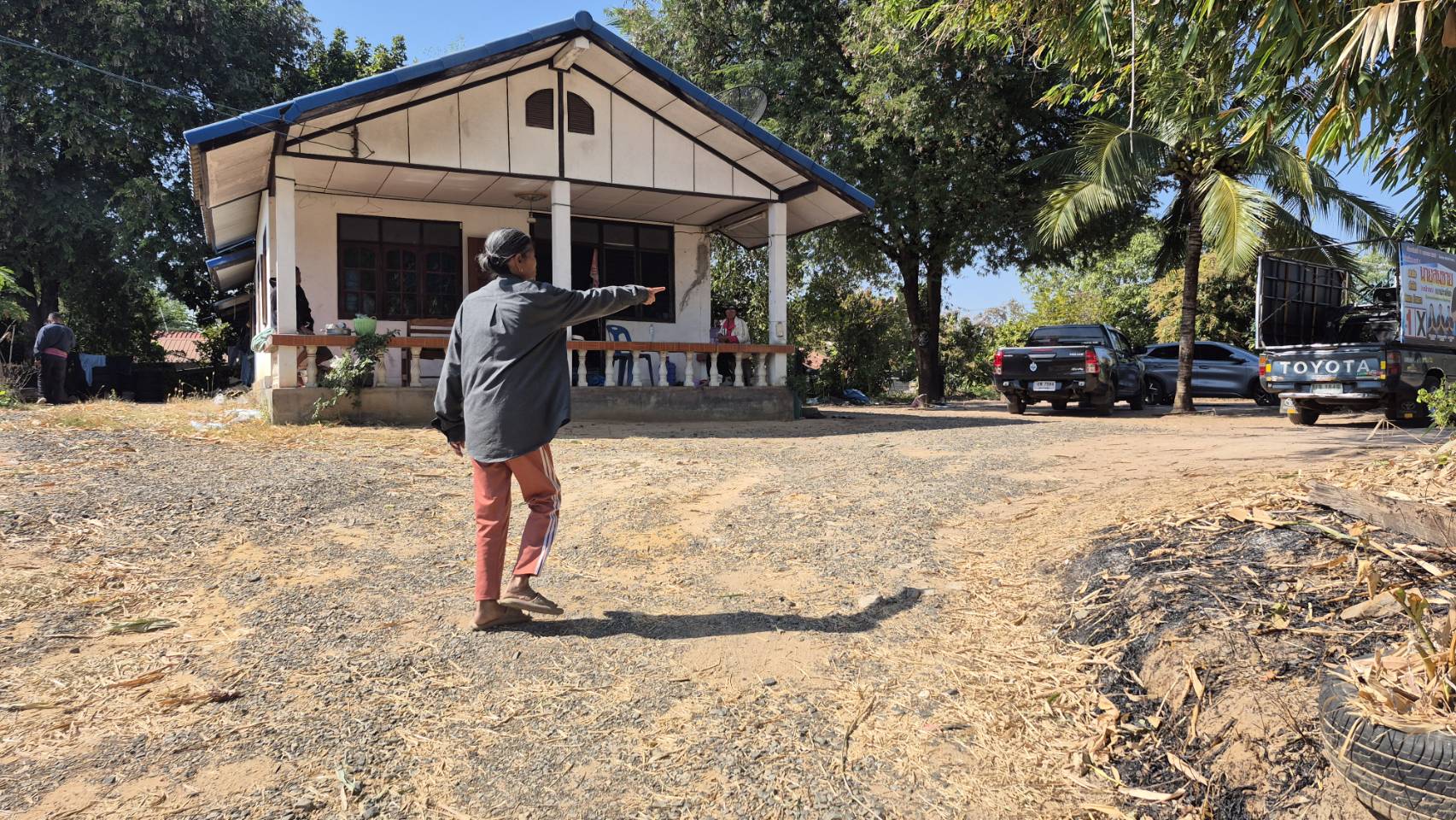 ด้านนางวันนา อายุ 67 ปี แม่ยายนายเอกภพ เล่าด้วยความตื่นตระหนกว่า ช่วงประมาณ 7 โมงเช้า ขณะกำลังล้างผักอยู่ข้างบ้าน ปู่ของผู้สมัครนายก อบต.หัวถนน ก็ได้ขับรถยนต์กระบะเข้ามาบริเวณหน้าบ้าน แล้วลงจากรถมาตะโกนเรียกหานายเอกภพ หรือ ขำ ซึ่งเป็นลูกเขยของตนเอง โดยได้ตะโกนว่า “ไอ้ขำมันอยู่ไหนจะมายิงกะบาลมัน” ตนก็ตกใจเพราะลูกเขยอยู่บ้านอีกหลังห่างออกไปราว 100 เมตร เห็นท่าทางเขาฉุนเฉียวมากและไม่รู้ว่ามีอาวุธติดตัวมาหรือไม่ จึงพยายามบอกให้เขาใจเย็นๆ มีอะไรค่อยพูดจากัน แต่เขาก็ยังพูดซ้ำๆ เหมือนเดิมว่า มันอยู่ไหน จะมายิงกะบาลมัน