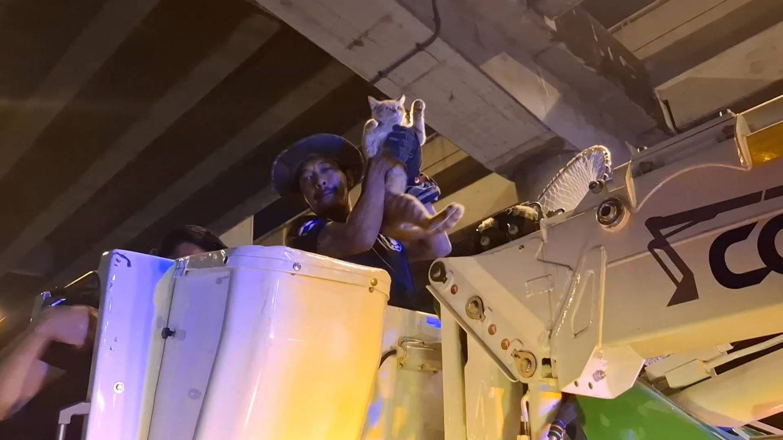 ส่วนผู้ที่พบแมวเป็นคนแรก เล่าว่า ได้ยินเสียงน้องแมวร้องมาแล้วประมาณ 2 วัน ก็เดินหากันแต่ก็ไม่เจอ โดยวันนี้ได้เงยหน้าขึ้นไปบนสะพานก็พบกับน้องแมวนั้นนั่งอยู่บนตอม่อ โดยเมื่อตอนเช้าที่เจอได้ปืนขึ้นไปดูก่อนแต่ไม่เจอเพราะปืนผิดเสา ช่วงเย็นจึงได้ประสานงานแจ้งเจ้าหน้าที่กู้ภับเทศบาลเข้าช่วยเหลือ.