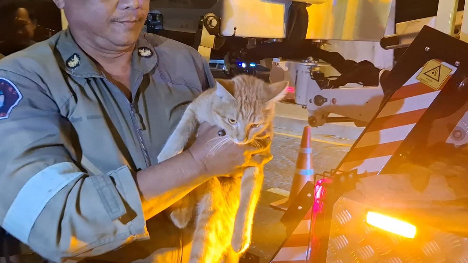 จากการตรวจสอบ พบว่าเป็นแมวสีส้มเพศผู้ ลักษณะอ้วนท้วนสมบูรณ์ มีปลอกคอสีน้ำเงิน เจ้าหน้าที่จึงมอบให้อาสากู้ภัยดูแลชั่วคราว พร้อมประชาสัมพันธ์หาเจ้าของมารับตัวกลับไป