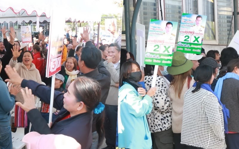 'ยศชนัน' หาเสียงเมืองหลวงเพื่อไทย ปลื้มแห่คล้องมาลัยแคบหมู