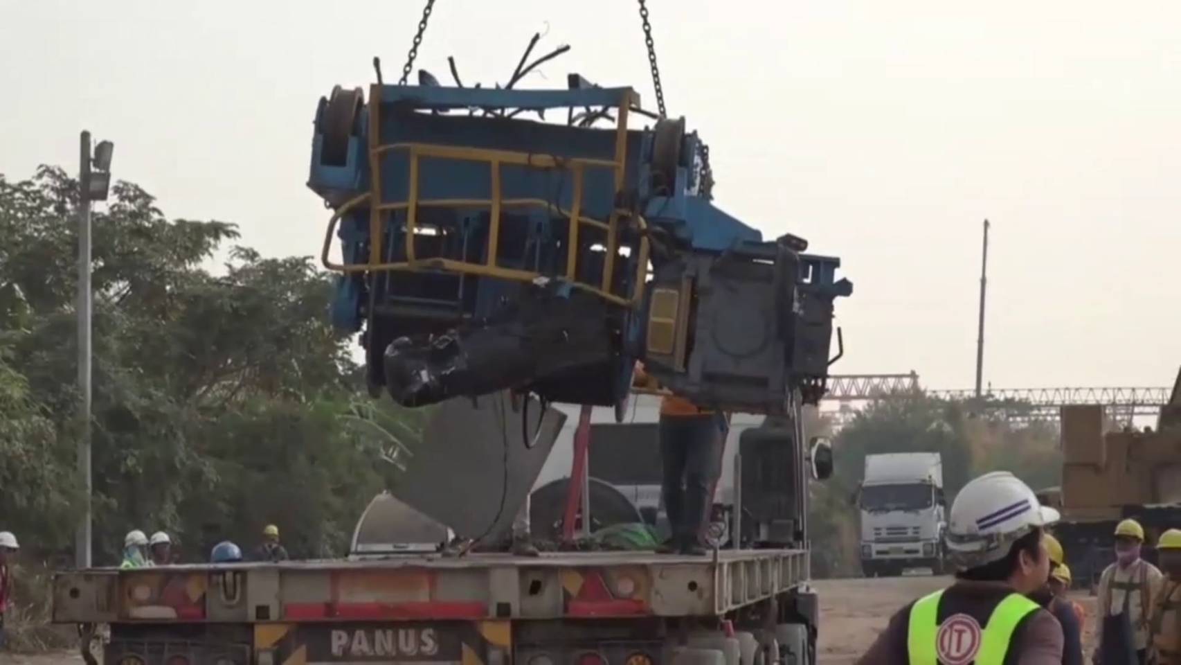 ล่าสุดเจ้าหน้าที่บริษัท อิตาเลียนไทย เดินหน้าปฏิบัติการกู้และรื้อถอนเครนก่อสร้างในพื้นที่เกิดเหตุอย่างต่อเนื่อง โดยเริ่มจากการกู้เครนส่วนด้านบน ตัวสีน้ำเงิน หรือที่เรียกว่า “โรลิ่ง” ลงมาด้านล่าง ก่อนจะเข้าสู่ขั้นตอนถัดไปคือการกู้ “เมนทัช” ตัวสีส้ม ซึ่งเป็นชิ้นส่วนหลักของเครนที่ยังคงอยู่ด้านบน