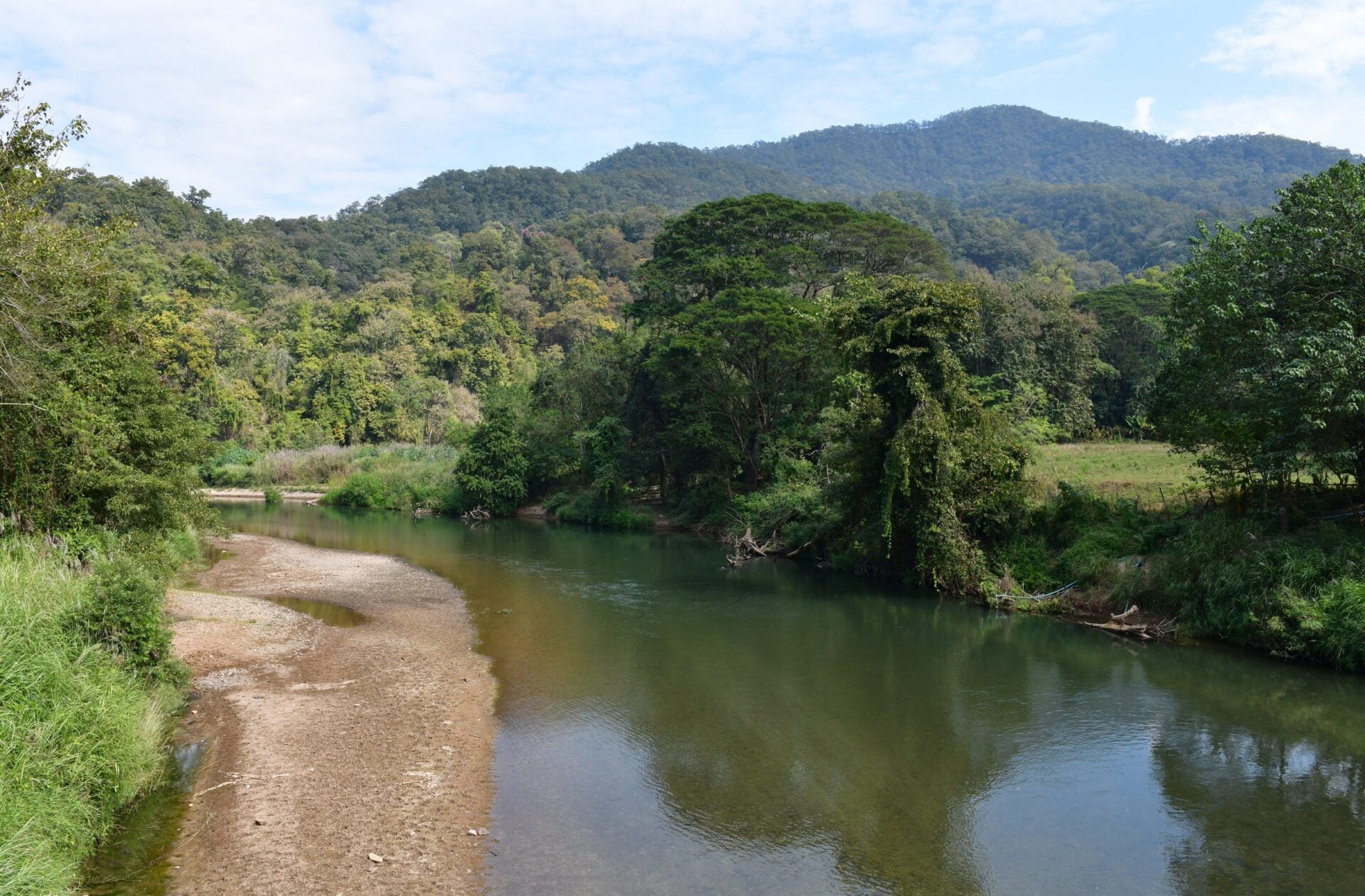 ทั้งนี้ผู้สื่อข่าวได้ลงพื้นที่สำรวจข้อเท็จจริงบริเวณริมแม่น้ำยวมซึ่งพบว่า ขณะนี้ได้มีนายทุนรายหนึ่งสร้างบ้านพักอยู่ริม “ห้วยกุ้ง”ซึ่งเป็นลำห้วยที่ไหลลงแม่น้ำยวมและอยู่ในพื้นที่ป่าสงวนแห่งชาติ โดยบริเวณดังกล่าวเป็นแหล่งกุ้งพิเศษชนิดหนึ่งซึ่งมีเฉพาะลำห้วยบางแห่งเท่านั้นและกุ้งชนิดนี้มีรสชาติอร่อย ดังนั้นชาวบ้านจึงนิยมไปวางไซดักไว้ อย่างไรก็ตามในช่วง 1-2 ปีที่ผ่านมานายทุนรายนี้ได้เข้าไปจับจองพื้นที่โดยการรู้เห็นของข้าราชการที่ดูแลพื้นที่ โดยล่าสุดนายทุนได้สร้างอาคารหลังใหม่พร้อมล้อมรั้วบริเวณห้วยกุ้งเพื่อไม่ให้ชาวบ้านเข้าไปดักกุ้ง ซึ่งชาวบ้านเคยร้องเรียนเรื่องนี้กับผู้ที่เกี่ยวข้องแล้ว แต่เรื่องกลับเงียบหายไป