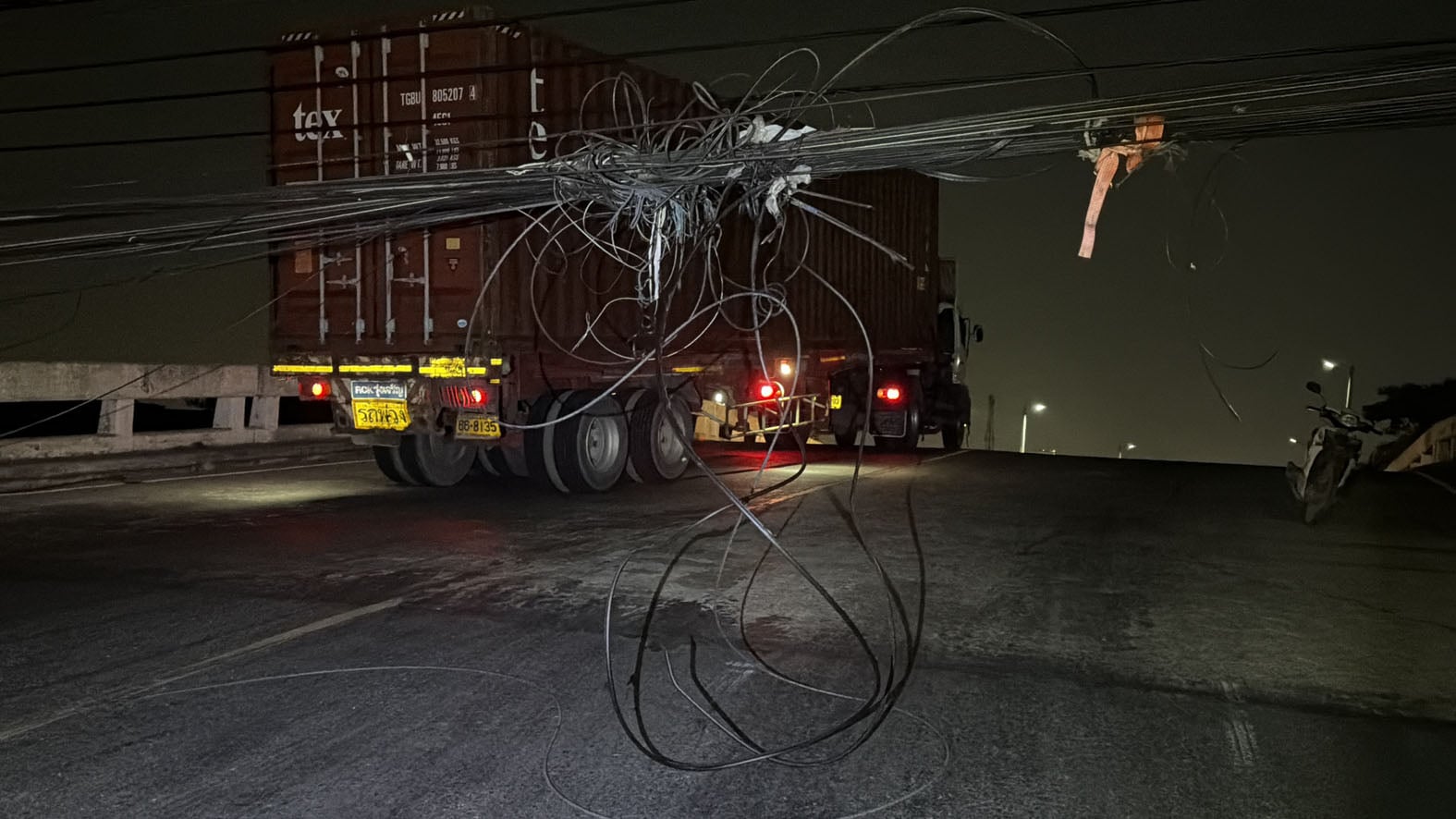 จากการสอบถามชาวบ้าน ทราบว่าเมื่อช่วงเย็นก็มีรถบรรทุกเกี่ยวสายเคเบิ้ลตรงนี้ขาด แล้วมีเจ้าหน้าที่ทำการแก้ไขโดยการจับสายเคเบิ้ลขึ้นไปพันไว้กันสายเคเบิ้ล