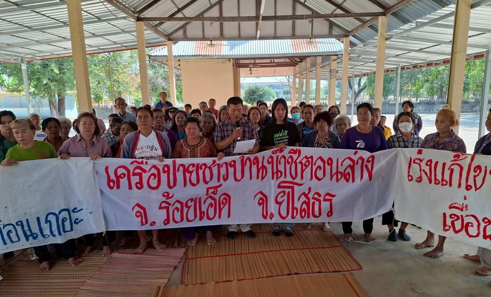 6 กุมภาพันธ์ 2569 - ที่วัดบ้านอีโก่ม ต.เทอดไทย อ.ทุ่งเขาหลวง จ.ร้อยเอ็ด ตัวแทนเครือข่ายชาวบ้านลุ่มน้ำชีตอนล่าง จ.ร้อยเอ็ด และจ.ยโสธร ประมาณ 100 คน ได้ร่วมกันอ่านแถลงการณ์ข้อเสนอแนวนโยบายถึงพรรคการเมืองทุกพรรคและรัฐบาลที่จะเกิดขึ้นในอนาคต ในประเด็นด้านการบริหารจัดการน้ำ ด้านปากท้องและเศรษฐกิจ และยังเชิญชวนให้ชาวบ้านเข้าคูหากาเห็นชอบประชามติแก้รัฐธรรมนูญปี 60