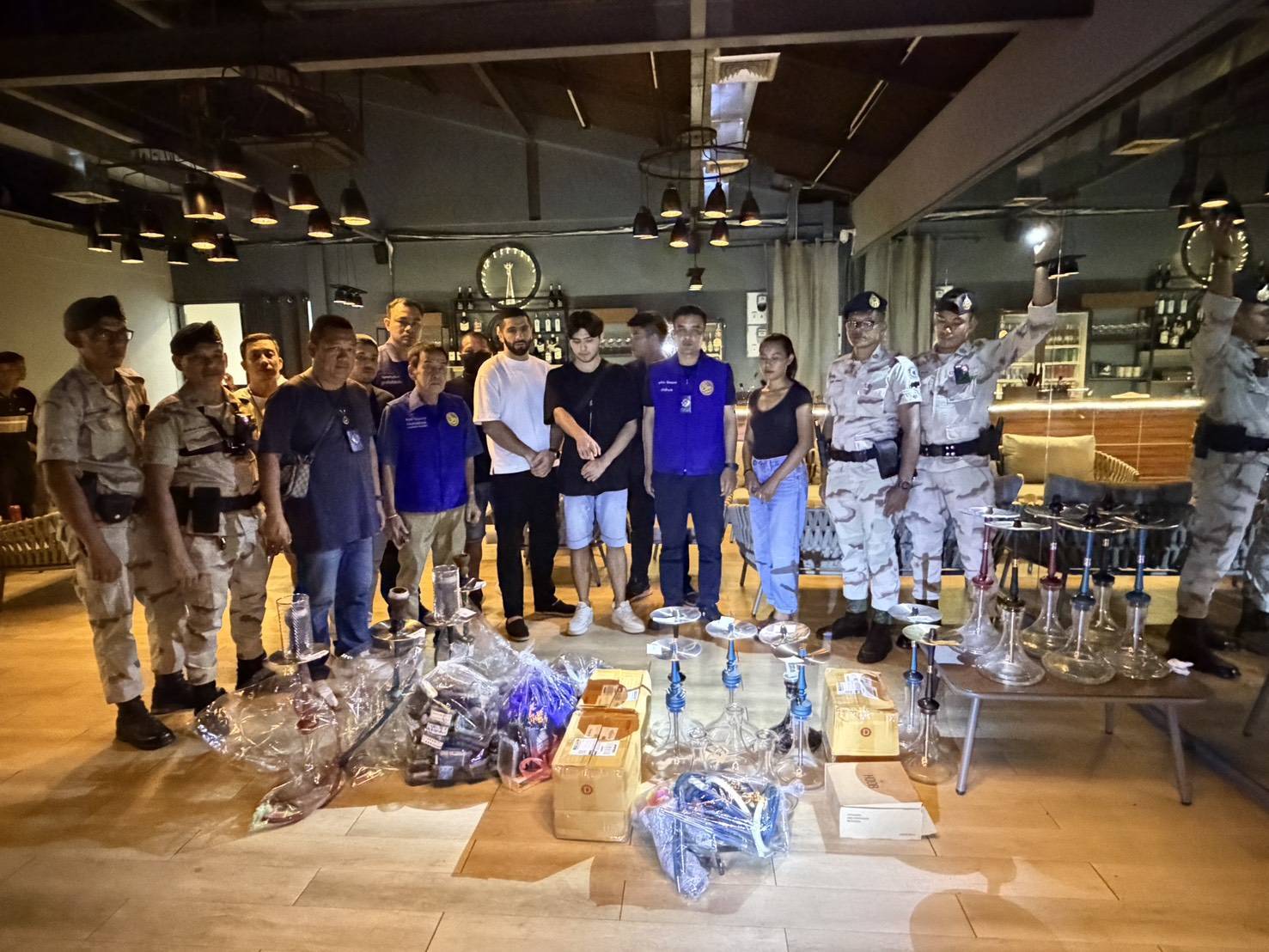 บุกจับ บาร์รัสเซีย ลักลอบเปิดสถานบริการ ลักลอบจำหน่าย บารากู่ จ้างชาวเมียนมา ทำงานยึดของกลางจำนวนมาก