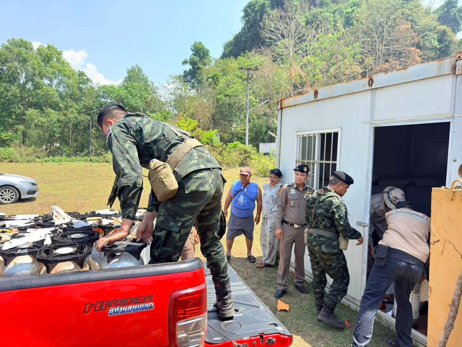 12 มีนาคม 2569 - เมื่อวันที่ 11 มี.ค.ที่ผ่านมา พล.ต.ต.พศวีร์ เรืองภู่ ผบก.ภ.จว.กาญจนบุรี ได้รับรายงานผลการจับกุมสินค้าเถื่อนรายใหญ่จาก พ.ต.อ.สันติ พิทักษ์สกุล ผกก.สภ.สังขละบุรี หลังสั่งการให้ชุดสายตรวจรถยนต์และสายตรวจบ้านพระเจดีย์สามองค์ ต.หนองลู อ.สังขละบุรี จ.กาญจนบุรี บูรณาการร่วมกับทหารหน่วยเฉพาะกิจลาดหญ้า และฝ่ายปกครอง เข้าตรวจสอบรถตู้คอนเทนเนอร์ต้องสงสัยภายในซอยบ่อปามังกร