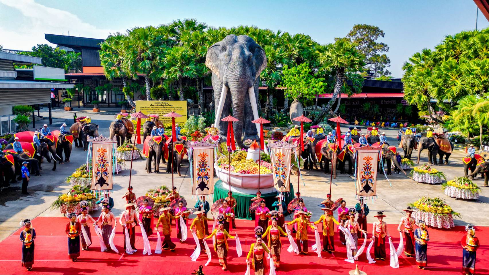ในปีนี้ ได้จัดให้มีขบวนแห่สุดยิ่งใหญ่ ประกอบด้วย นักแสดง และช้างแสนรู้ 60 เชือก สร้างสีสัน และความตื่นตาตื่นใจ ต่อสายตานักท่องเที่ยว การประกอบพิธี “ฮ้องขวัญช้าง” หรือพิธีทำขวัญช้าง ตามประเพณีโบราณ เพื่อเสริมสิริมงคลแก่โขลงช้าง