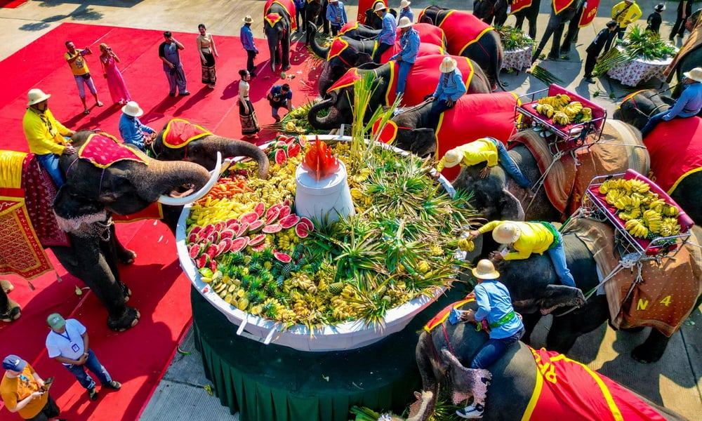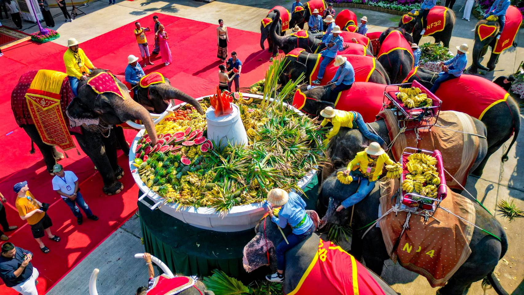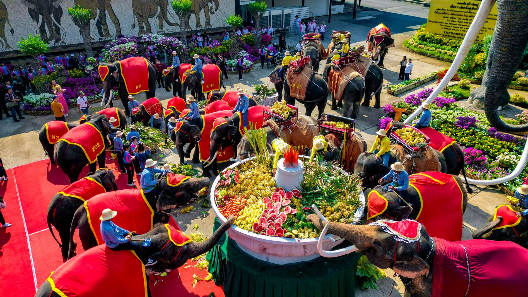 สวนนงนุชพัทยา จัดเลี้ยง “หมาล่าหม้อไฟผลไม้ยักษ์” เฉลิมฉลองช้าง 60 เชือก วันช้างไทย