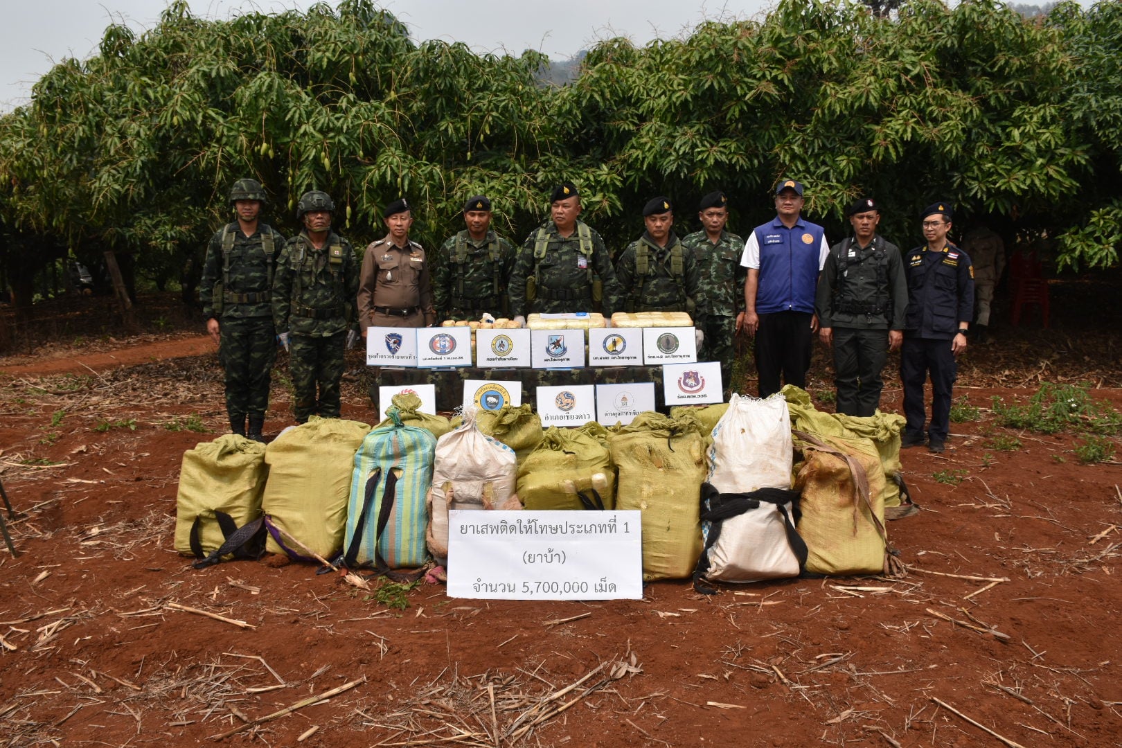 แต่กลุ่มบุคคลดังกล่าว ได้ใช้อาวุธไม่ทราบชนิดและขนาดยิงใส่เจ้าหน้าที่ จนเกิดการปะทะ ประมาณ 5 นาที ฝ่ายเราปลอดภัย กลุ่มขบวนการอาศัยห้วงทัศนวิสัยจำกัด และความชำนาญในพื้นที่ หลบหนีไปได้ หน่วยจึงได้จัดกำลังเพิ่มเติม จำนวน 4 ชุดปฏิบัติการ วางกำลังควบคุมพื้นที่เกิดเหตุ ตรวจพบของกลางกระสอบดัดแปลงเป็นเป้สะพายหลัง จำนวน 25 เป้ ภายในบรรจุยาเสพติดให้โทษประเภท 1 (ยาบ้า) รวมจำนวนทั้งสิ้น 5,700,000 เม็ด