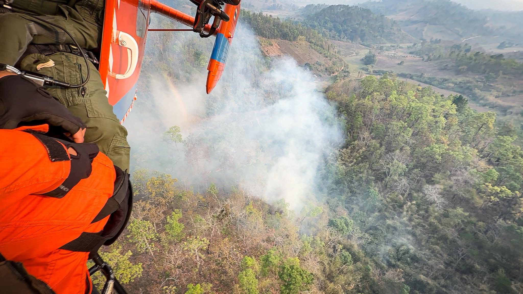 นอกจากนี้ ปลัดกระทรวงมหาดไทยได้สั่งการให้เฮลิคอปเตอร์บรรเทาสาธารณภัย KA-32 จำนวน 2 ลำ เข้าปฏิบัติการทิ้งน้ำดับไฟในจุดวิกฤตในพื้นที่จังหวัดเชียงใหม่ โดยมี พล.ท.ชายแดน กฤษณสุวรรณ แม่ทัพน้อยที่ 3 และนายสหรัฐ วงศ์สกุลวิวัฒน์ รองอธิบดีกรมป้องกันและบรรเทาสาธารณภัย รักษาการในตำแหน่งที่ปรึกษาด้านการปกครอง กระทรวงมหาดไทยและผู้ว่าราชการจังหวัดเชียงใหม่ร่วมขึ้นบินปฏิบัติภารกิจเพื่อประเมินสถานการณ์เหนือพื้นที่เป้าหมาย