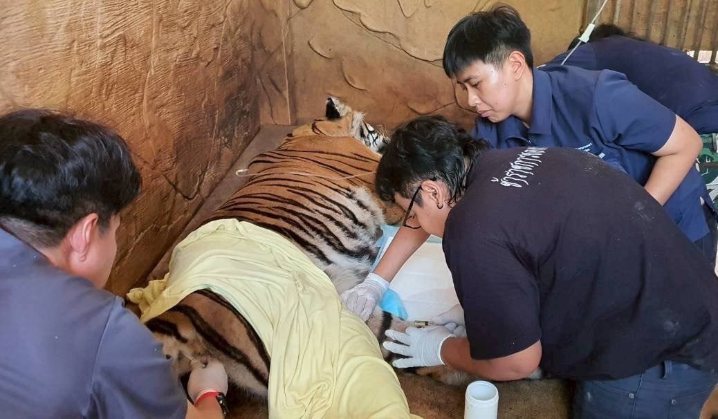 ทีมสัตวแพทย์บึงฉวาก รุดช่วย “คุณยายภูเขียว” เสือโคร่งชราวัย 18 ปี หลังพบภาวะเล็บงุ้มจิกเนื้อ ล่าสุดอาการดีขึ้น เดินปร๋อ-กินอาหารได้ปกติ