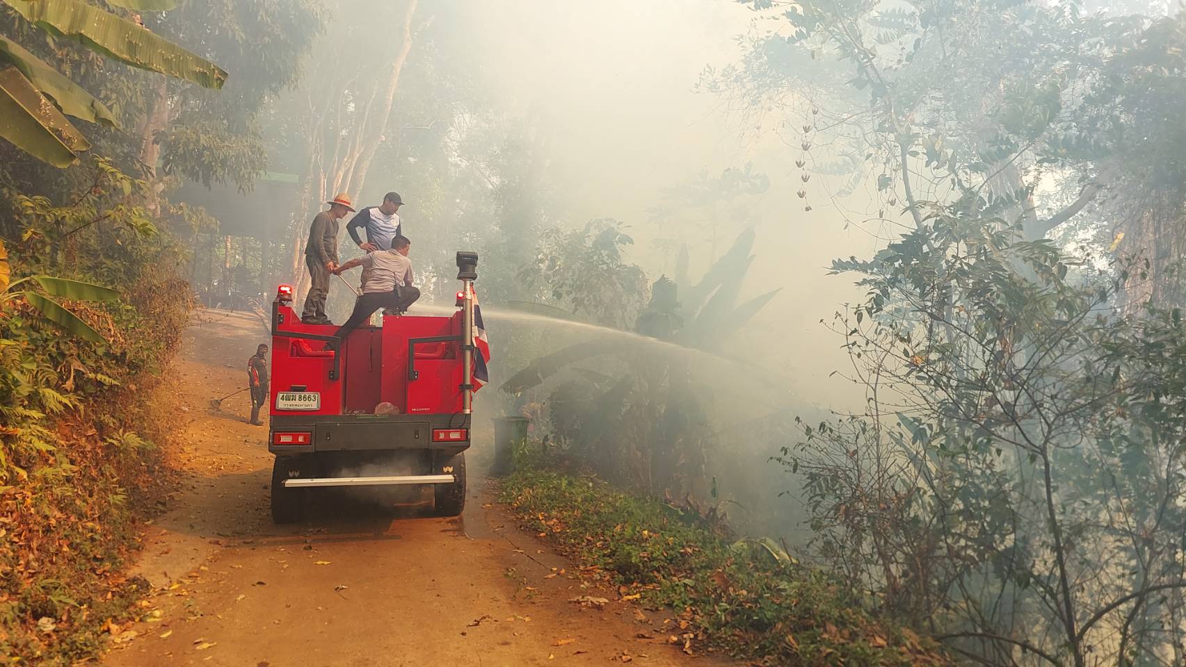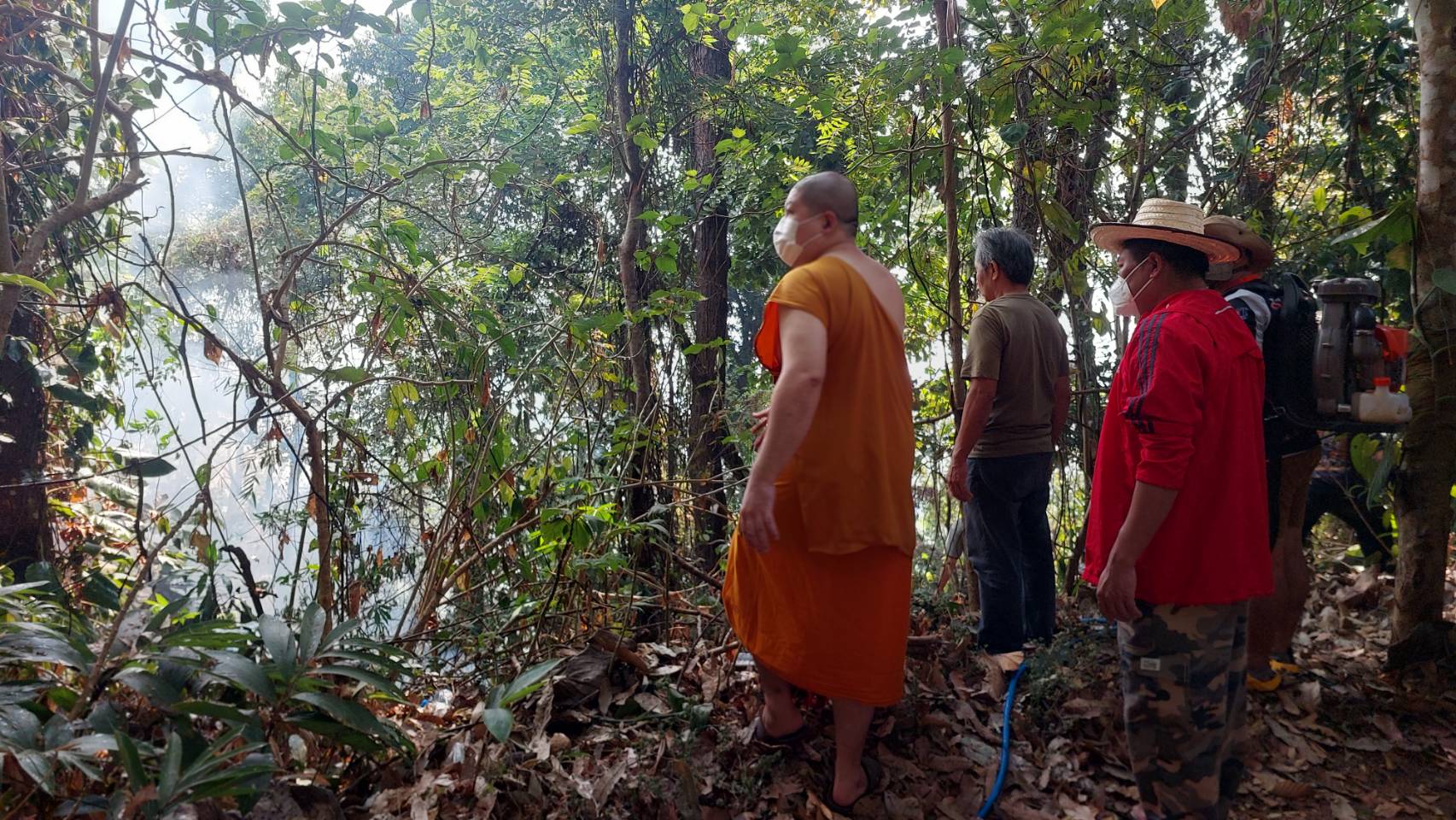 หน่วยงานเกี่ยวข้องและประชาชน ระดมกำลังร่วมกันดับไฟที่โหมไหม้ตลอดเวลาเพราะป่าแห้ง อากาศร้อนจัด ซึ่งแนวไฟไหม้ห่างบริเวณวัดไม่เกิน 500 เมตร ก่อนสามารถควบคุมสถานการณ์ไม่ให้ลามถึงสถานที่ศาสนสถานสำคัญได้ เมื่อเวลา 11.00 น. แต่ยังมีไฟไหม้เป็นจุดๆ ชาวบ้านบอกว่า เหตุการณ์ที่เกิดขึ้นคล้ายกับปี 2563 ในจุดเดียวกันนี้